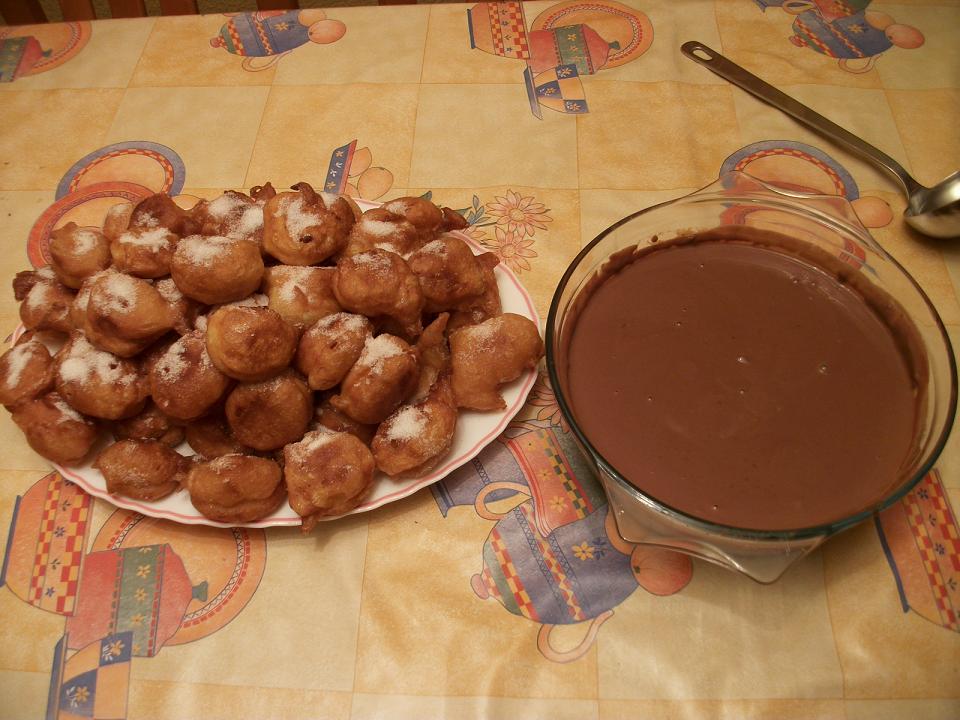 Dejar templar la masa y añadir los 5 huevos unos a uno hasta tener una masa homogénea, dejar reposar lo que tarda en calentarse el aceite, abundante en una sarten amplia....el aceite debe estár bien caliente pero no "arebatado" un término medio para que no se quemen sin hacerse un poco por dentro ni demasiado bajo para que no queden demasiado cozidos y endurecidos....