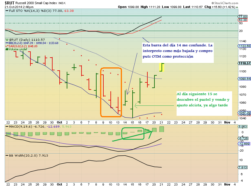 La vela del día 14-10 me confunde e induce a comprar protección (4 puts), como ya menciono en el último post. (CAGADA macroprudencial)