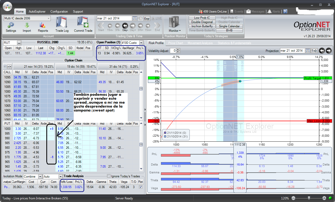 Pasan unos días en los que el índice hace sus cositas y llegamos a la fecha de hoy. Como siempre, medrosos first podemos ir saliendo ya, vendiendo spreads sin tirar la horquilla, aunque pasando por la caja del broker, desde luego.