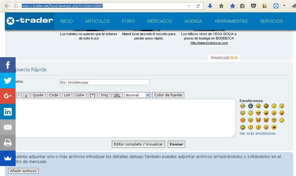 Estoy de acuerdo completamente que eso es así, pero por ser eso así, y por no ser vulcanianos, luego a veces, viene lo que viene...X-Trader escribió:OK Wikmar, comprendo tus argumentos aunque también te digo que... te lo pasarías pipa!!!En serio, no tiene nada que ver lo que ves en el Foro con como son las personas en directo, en la práctica los traders retail solemos ser gente amable, educada, divertida y con ganas de ayudar al de al lado, algo raro en esto de los mercados. En todo caso respeto tu decisión pero estaría genial poder conocerse en persona y charlar un rato con todos.