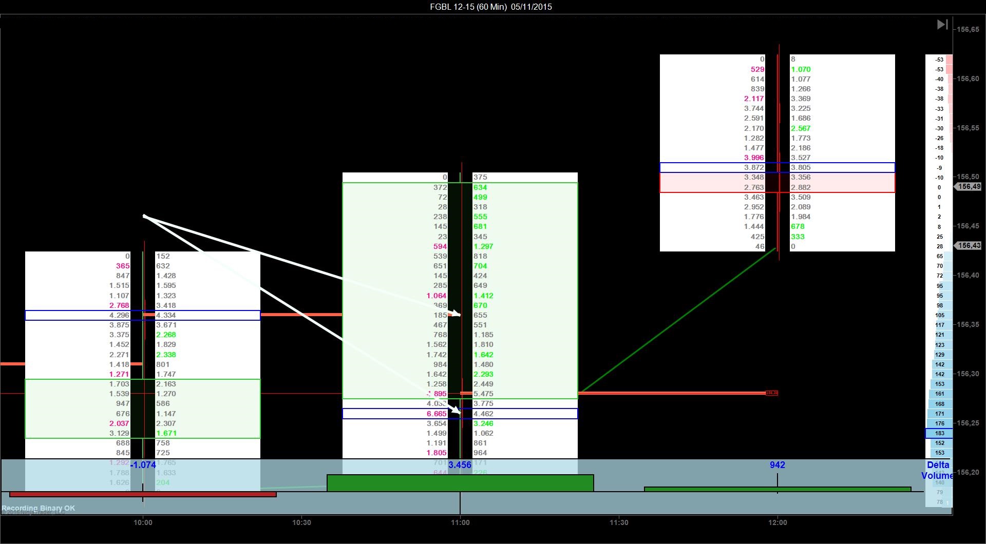 Vamos a tomar como ejemplo un gráfico del Bund 60 m, en la captura vemos un desplazamiento de precio...............