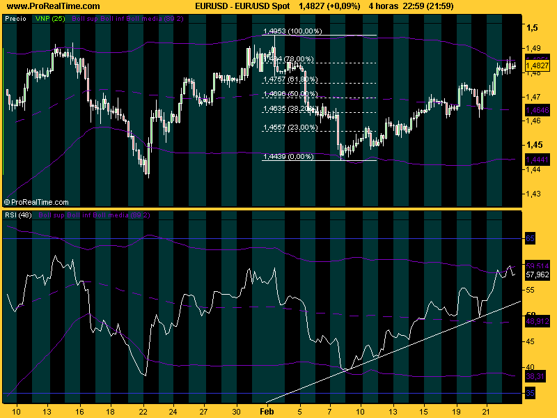 Sin embargos, lo que sí produce cambios significativos es si jugamos con el máximo o el mínimo como diría dkvas en el rsi. En este caso, si ponemos el rsi con el máximo en lugar de con el cierre, la línea de tendencia esa que apuntaba userone todavía estaría intacta. Es interesante, porque como se rompa...voto que se rompe el lunes