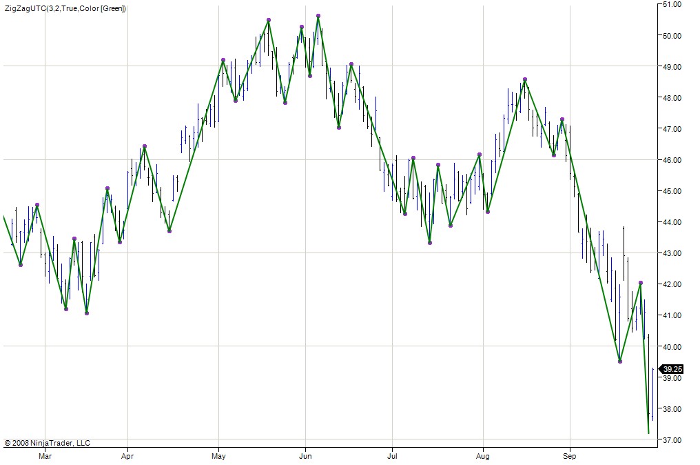 Con respecto al zig.zag yo no uso la función a secas uso las marcas generadas con un experto que me indica los puntos donde se debía haber comprado o vendido, de modo que intento reproducir con otros indicadores las operaciones en estos puntos, a la vez que busco que mi sistema realice un número similar de operaciones que el sistema del zig-zag.
