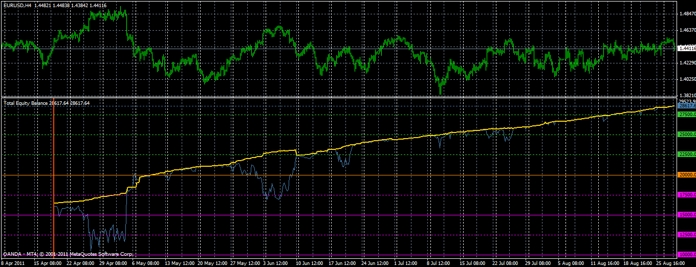 Seguimos con la regularidad de las últimas semanas, incluso diría meses. Claro que debemos ver al eurusd salir de este lateral para tener la verdadera medida de dicha regularidad ya que en lateral con este sistema no es posible obtener pérdidas. Ya hemos superado el 43% de rentabilidad.