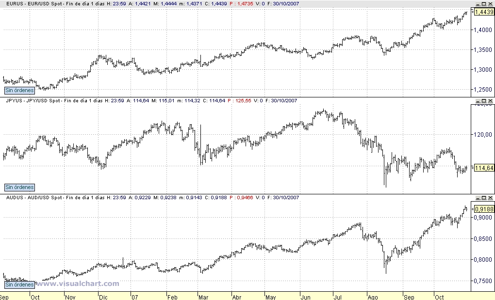 por eso tan importante el tema de los tipos de interes en las divisas, lo del dolar yen de hoy ha sido por q el banco japo no ha tocao los tipos, q los deja al 0.5%, y ya ves, así tol mundo kiere pedir yenes prestaos, luego los cambias por la divisa q kieras, y ale, a gastar! jajajaja tb con el suizo, q estA al 2% por ahi