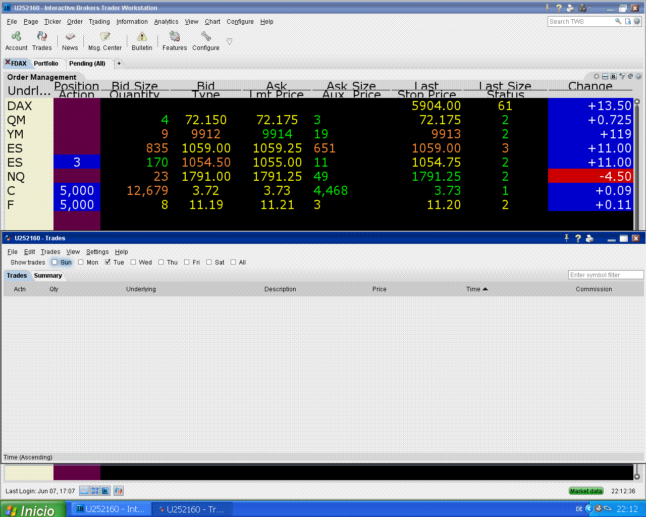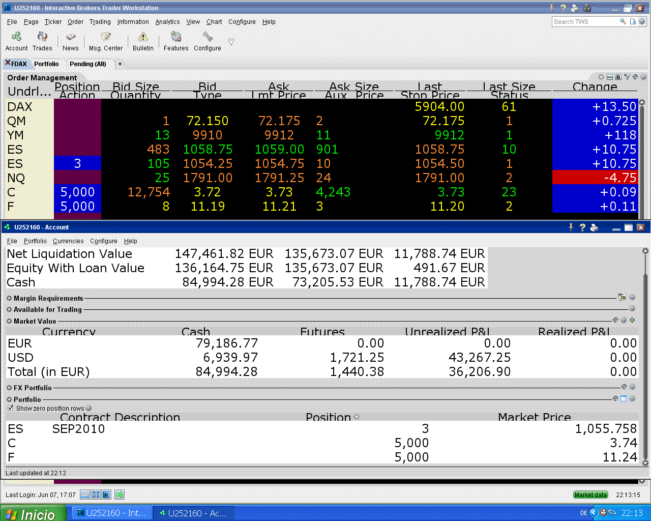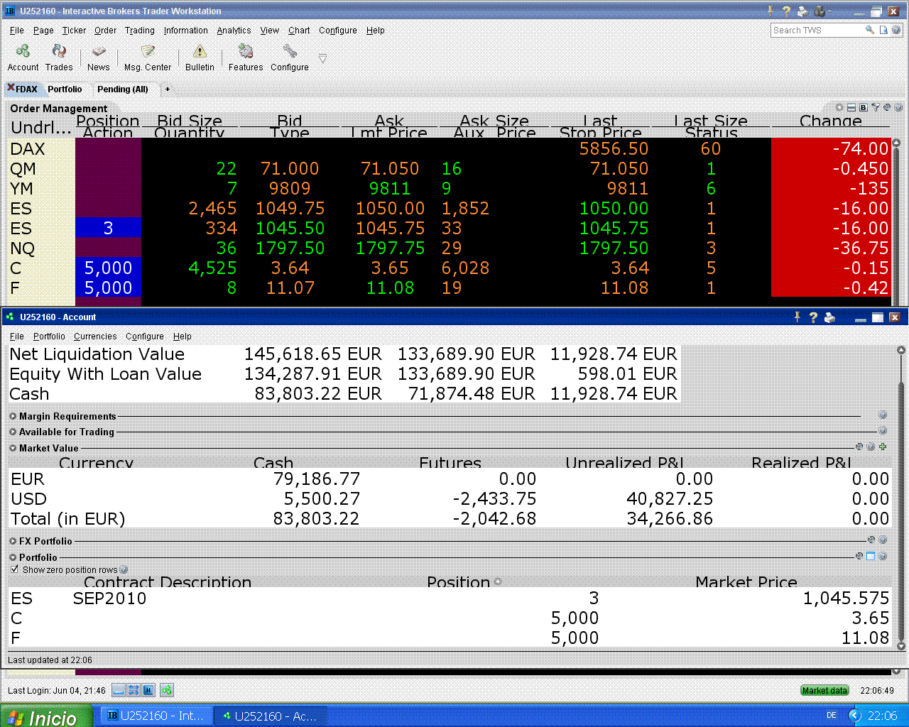 Corto en el IBEX a 10.890 (2 contratos GRANDES) y en el EUR/USD a 1,3443 (1 contrato, multiplicador: 125.000).