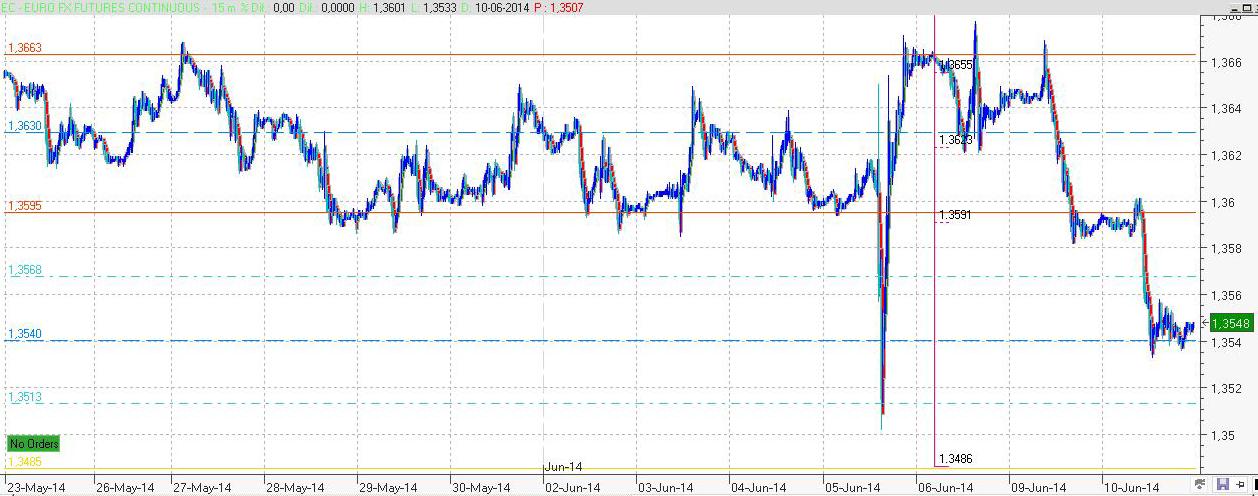 A mi me ha ido bien ,lo tenia claro o tenia que subir sin caer y cerrar por debajo de 1.3595 o sacaba compras con perdidas y vendia con objetivos intermedios hasta el minimo semanal. Como cayo fuerte el lunes y cerro por debajo de los cierres de los dias de la semana pasada, cayo y volvio a cerrar en minimos con debilidad para retroceder con lo que volvi a entrar y a cerrar cuando el precio volviera a caer por debajo del minimo anterior que esta vez fue 1.3522 se nota que hay ido perdiendo fuerza pero, sigue cayendo y conforme se ve el precio quiere probar el minimo de la semana pasada.