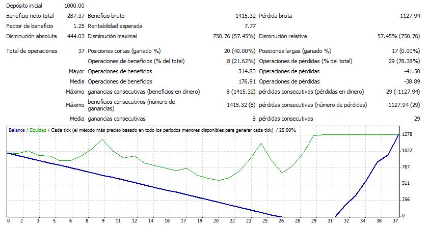 Bien, pues no han pasado grandes cosas, y ambas tienen de momento 10 órdenes cerradas, pero una tiene pérdidas latentes de 321 euros y la otra ya lleva 414 euros. La equity de la primera está en 928 euros y la de la "modificada" está en 831 euros, así que tu idea no parece ir muy bien, de momento, y eso que la lareralidad no ha sido para nada exagerada.