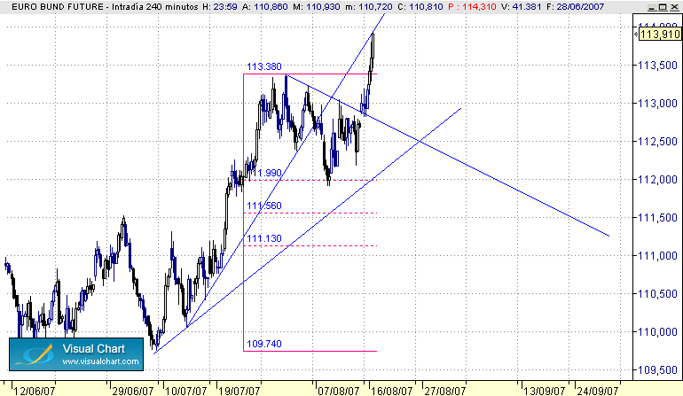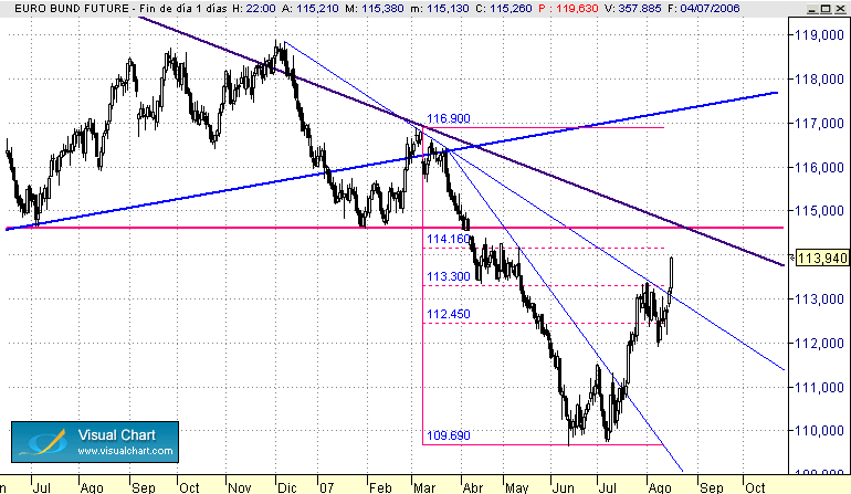 en bund los 112 son tela marinera tEcnicamente hablando incluiendo directriz alcista de largo plazo rota pabajo y haciendo de resis, al mismo tiempo q directriz de cort plazo bajista y todos los objetivos por abajo cumplidos, usea, rango megadefinido pa romper cualkiera de los dos ( 102.62 en schatz y 102.35s )