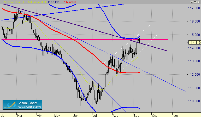 En diario fuerte resistencia en 114.60