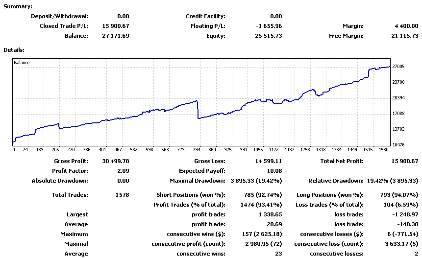 Gracias Spirit. Es verdad, estoy poniendo las coberturas muy lejos y con posiciones iniciales de 0,2 lotes, lo cual supone un riesgo muy alto. Para la proxima corregiré este punto, aunque el dia de ayer no lo hice. Referente a lo de los distintos subyacentes, creo que solo voy a trabajar con el eurodolar. El Euroyen para mi gusto tiene mucho spread.Spirit escribió:Lo primero recomendarte que lo guardes como informe detallado, no como informe simple, así podremos ver todas las estadísticas que suelo mstrar en mis gráficos.Ciclo escribió:Saludos Spirit.
