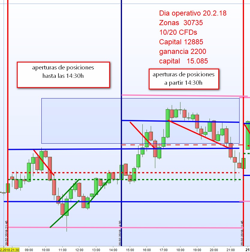 Los resultados del trading seran indicados en un grafico continuo. Es posible que posiciones abiertas hasta la 14:30h pueden ser positivos y por la tarde negativos o vice versa. Los participantes haran sus proprios apuntes que pueden ser mas extensos como ganancias/perdidas en diferentes zonas, huecos... es decir un analisis completo continuo tal como lo he hecho durante anos. Estos apuntes son la basa de las reglas.