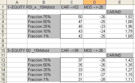 En la imagen dejo 2 sistemas, uno con rentabilidad CAR del 53% y Maximo DD del -28%, y otro con CAR 39, MDD -26.
