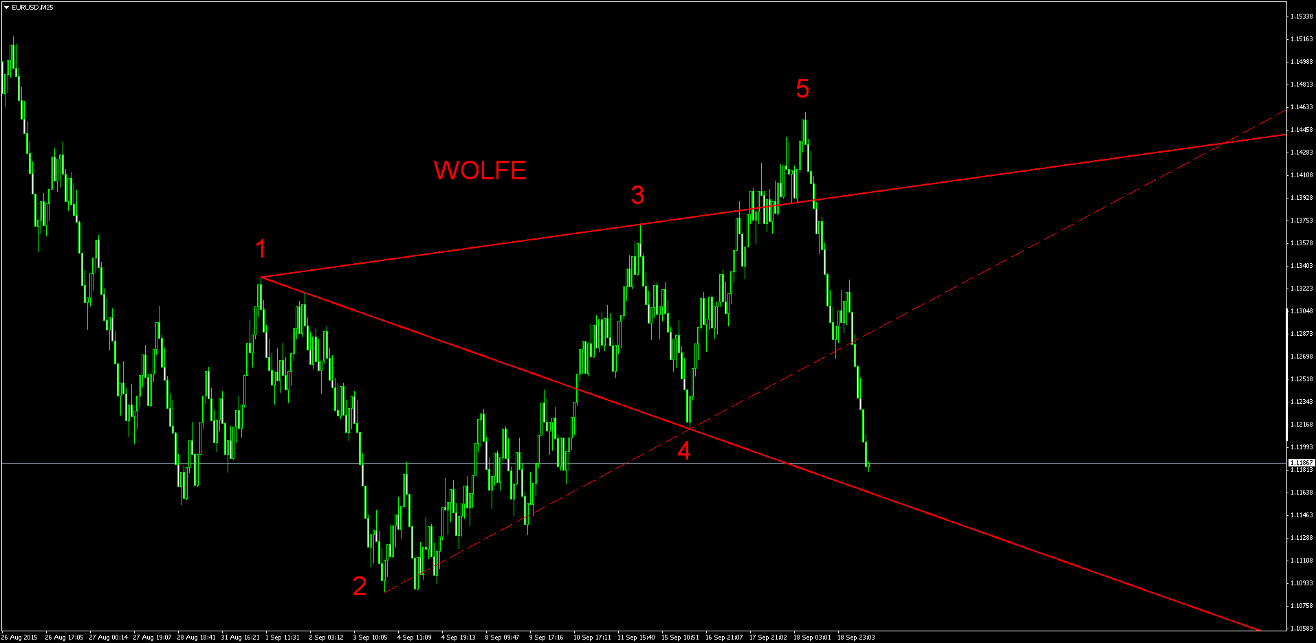 El gráfico de ese wolfe es de velas de rangos, pero si te lo marcas en gráfico de una hora está ya cumplido, puesto que el precio ya ha tocado la 1-4 y ahí se acaba la pauta...¿Qué hará después? pues dependerá de la estructura que haya hecho o esté haciendo el precio.