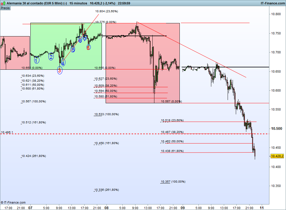 También es evidente como ese tramo se va agotando por el recorrido de las sesiones....... valle cresta-valle cresta,..... la dinámica de la oscilación en tendencia....... :D