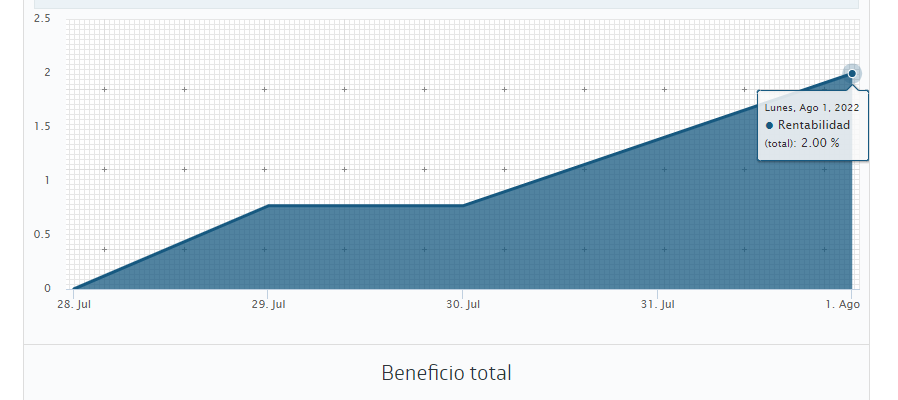 Edito. Enhorabuena por la rentabilidad. Me retracto sobre lo de arriesgar mas, un 30% está mas que bien.Síntesis escribió: 30 Ago 2022 22:33Hola Trader 2010. Yo creo que tener un DD demasiado bajo indica que los tamaños de la posición se pueden subir y así aumentar la rentabilidad.Trader2010 escribió: 24 Ago 2022 21:23 Ago-24 Inicialmente saludándoles,