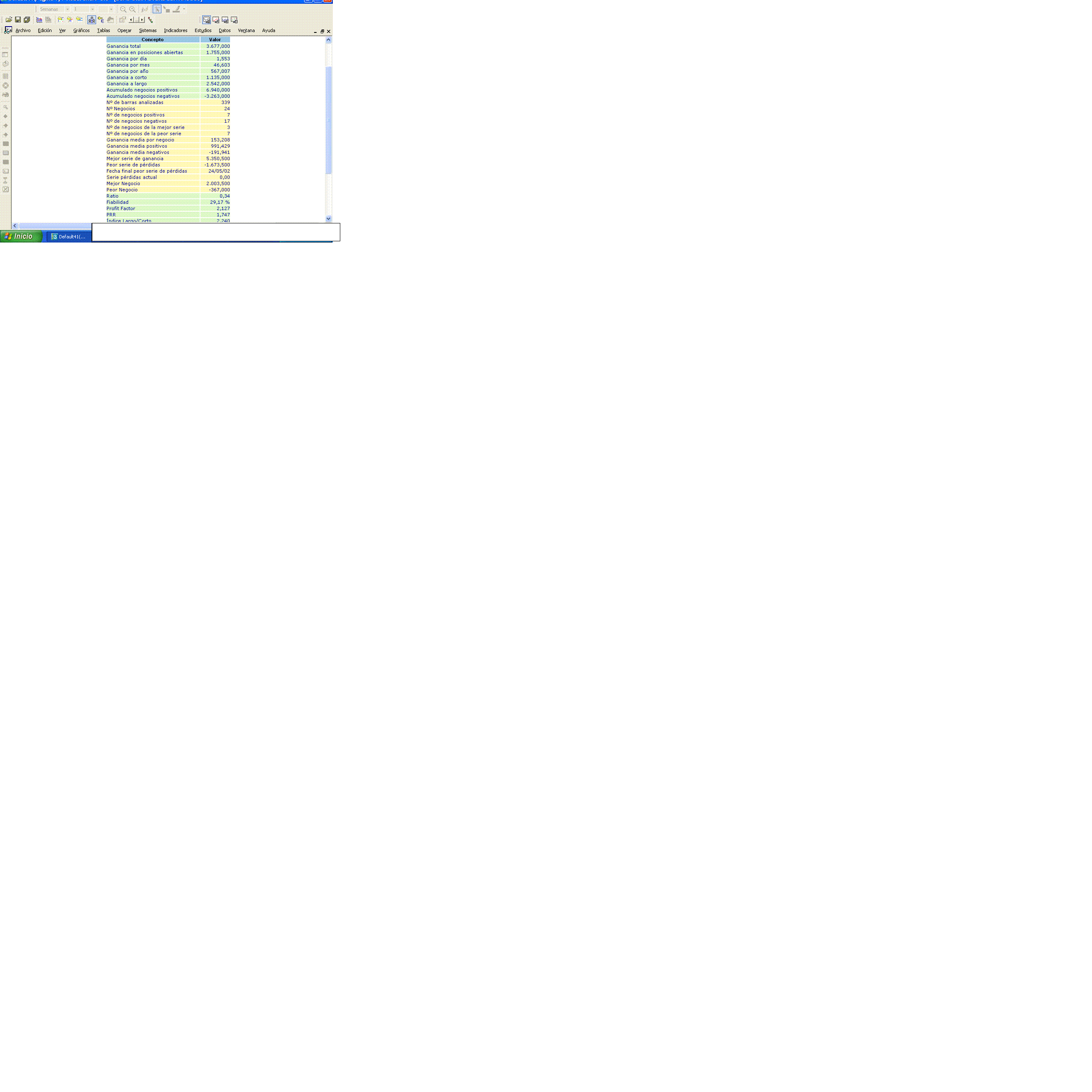 Fijate los ratios que tiene y lo que gana por dia, descontando los vencimientos y gastos , con el mercado muy a favor con tendencias muy marcadas gana apx 1 pipo al dia con un ratio riesgo-beneficio de 1x 5 y un Draw Down de 40.000 euros desde el 2001 jejeje .