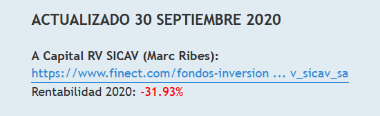 Pero hombre, hay que reconocer que con la caída que hubo en el mercado a principios de 2020 fueron los únicos que "adivinaron" que el mercado iba a caer.X-Trader escribió: 15 Ene 2021 18:50 Al hilo de mi último post, más madera contra la Smart Social Sicav, desde el excelente blog de Javier Molina en El Confidencial: