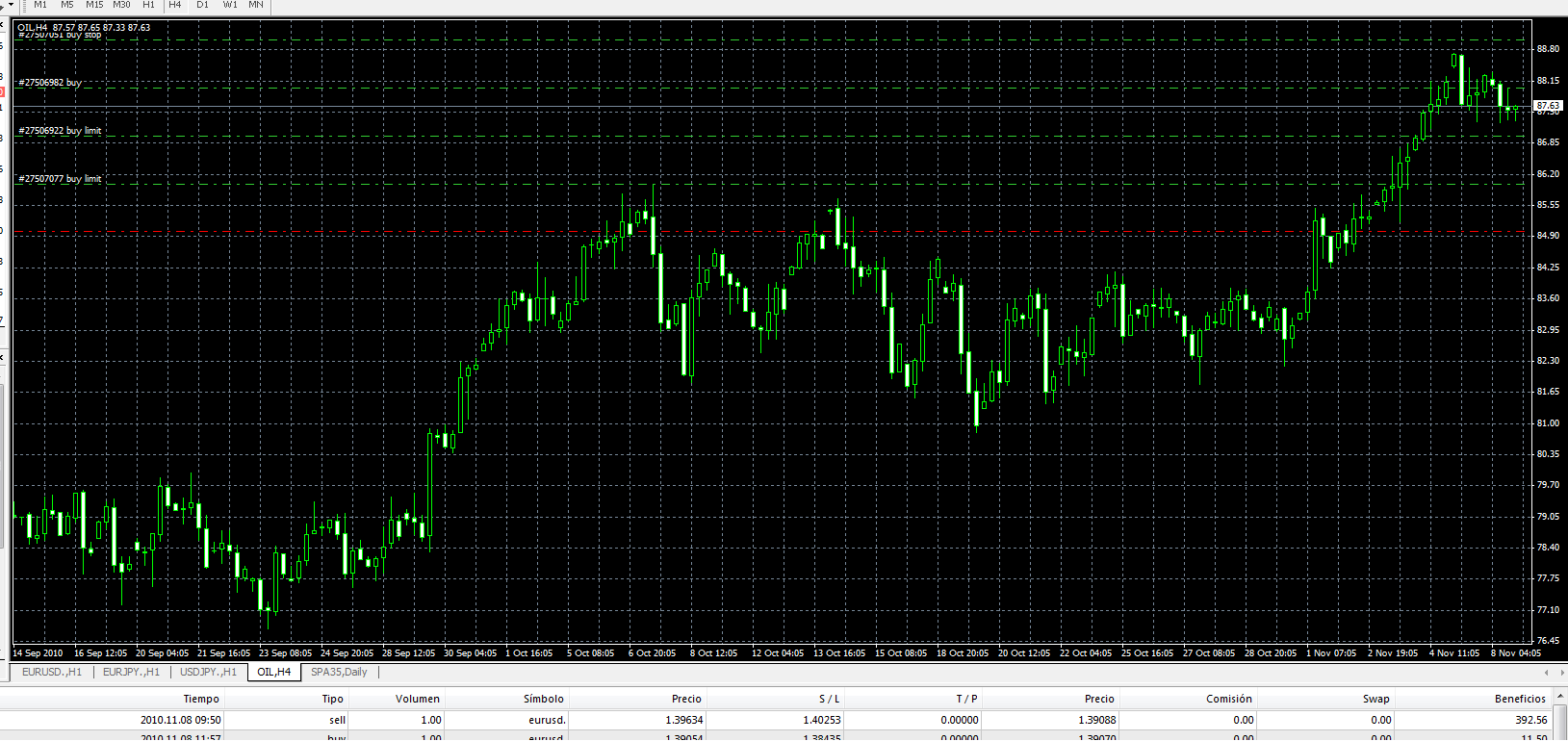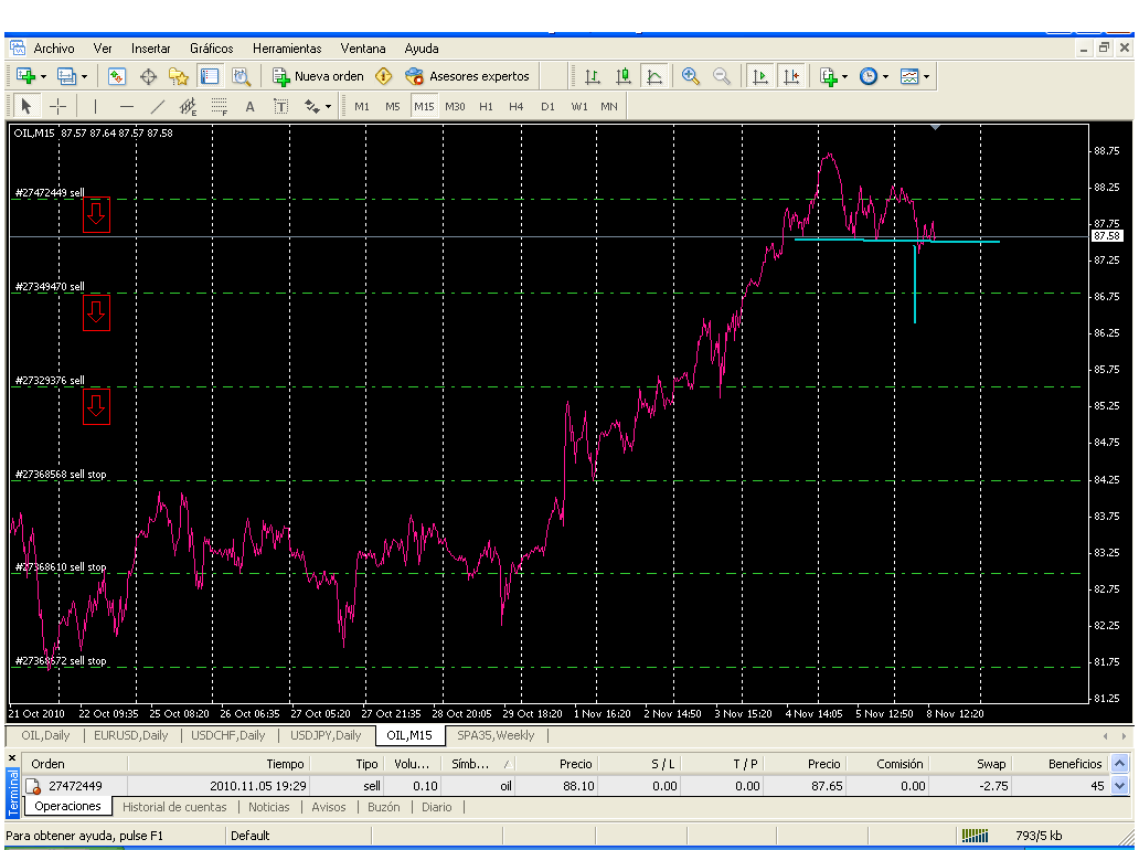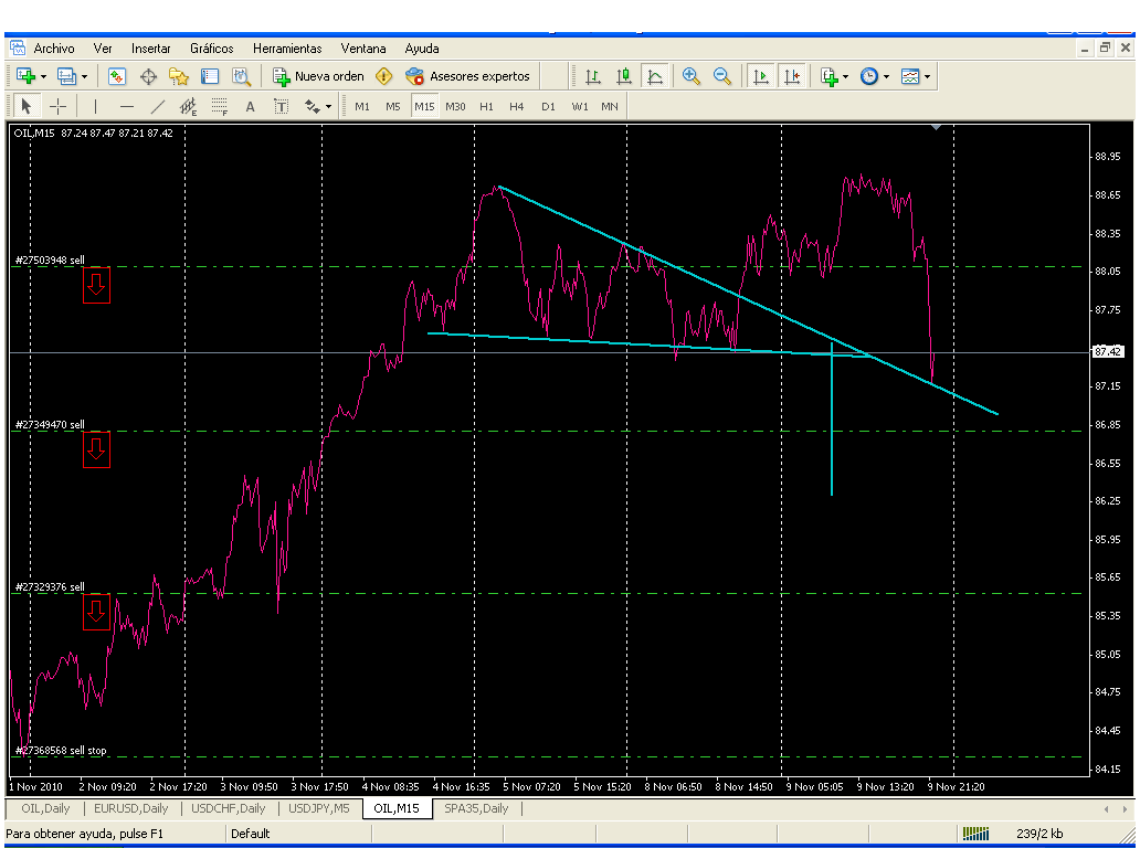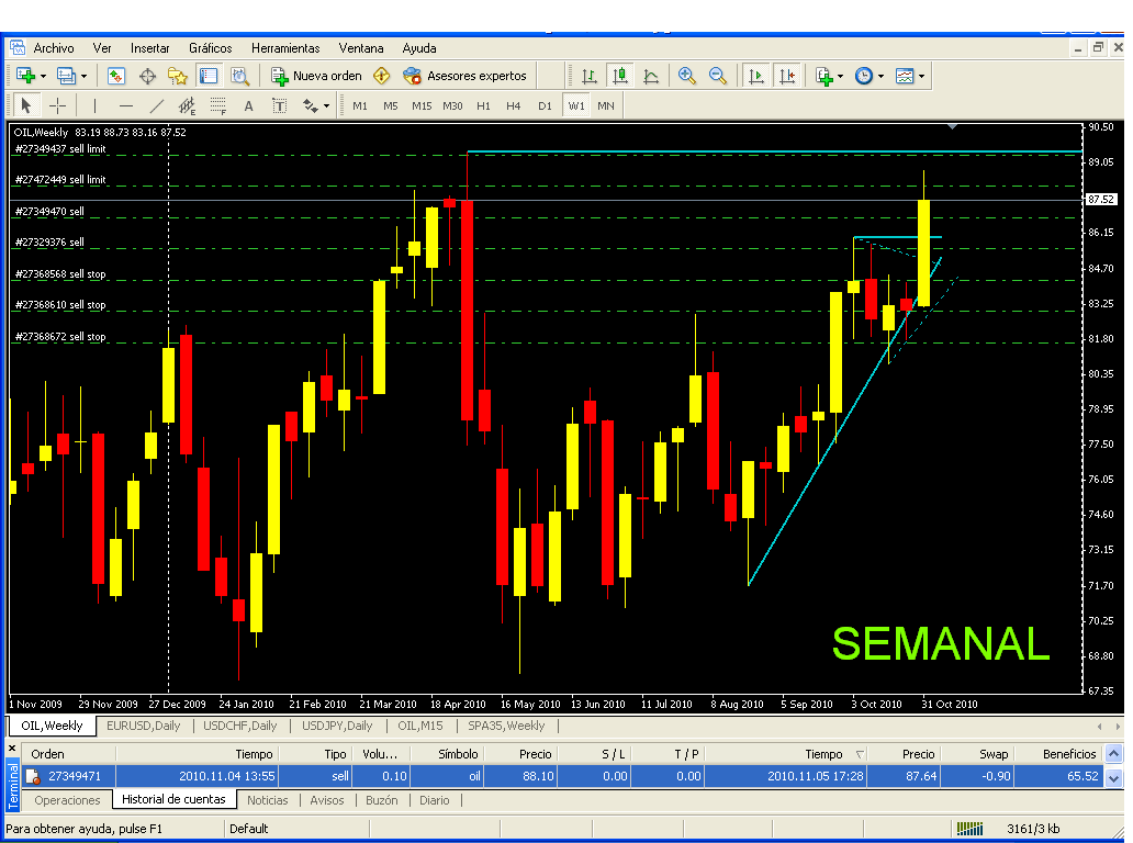 El oil está haciendo lo que mas o menos tenía previsto, el que no hice lo correcto fui yo en la primera entrada de 86,30, si fue correcta la segunda en 87, ahí era el sitio.