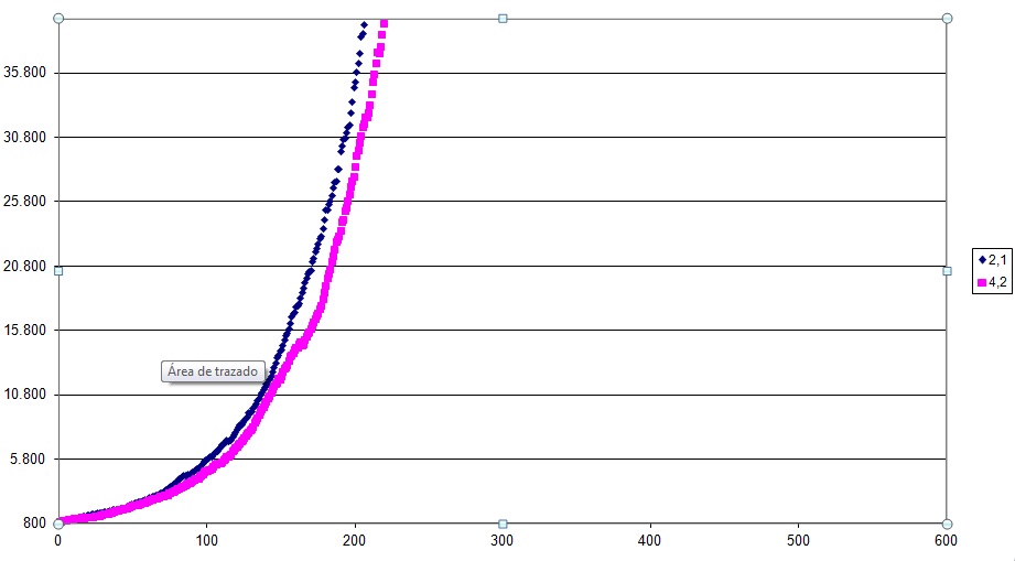 Wikmar escribió: Os pongo lo que me da a mí en dos pantallazos y también adjunto la hoja de cálculo por si queréis tantear y proseguir el estudio, porque se pueden hacer bastantes más cosas. Aunque si no me he equivocado, ya es concluyente para lo que queremos saber en este punto.