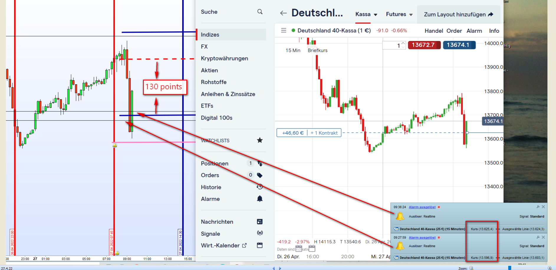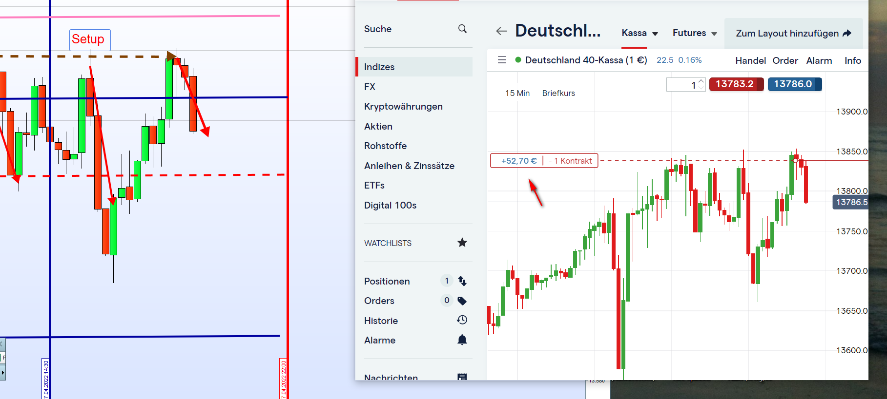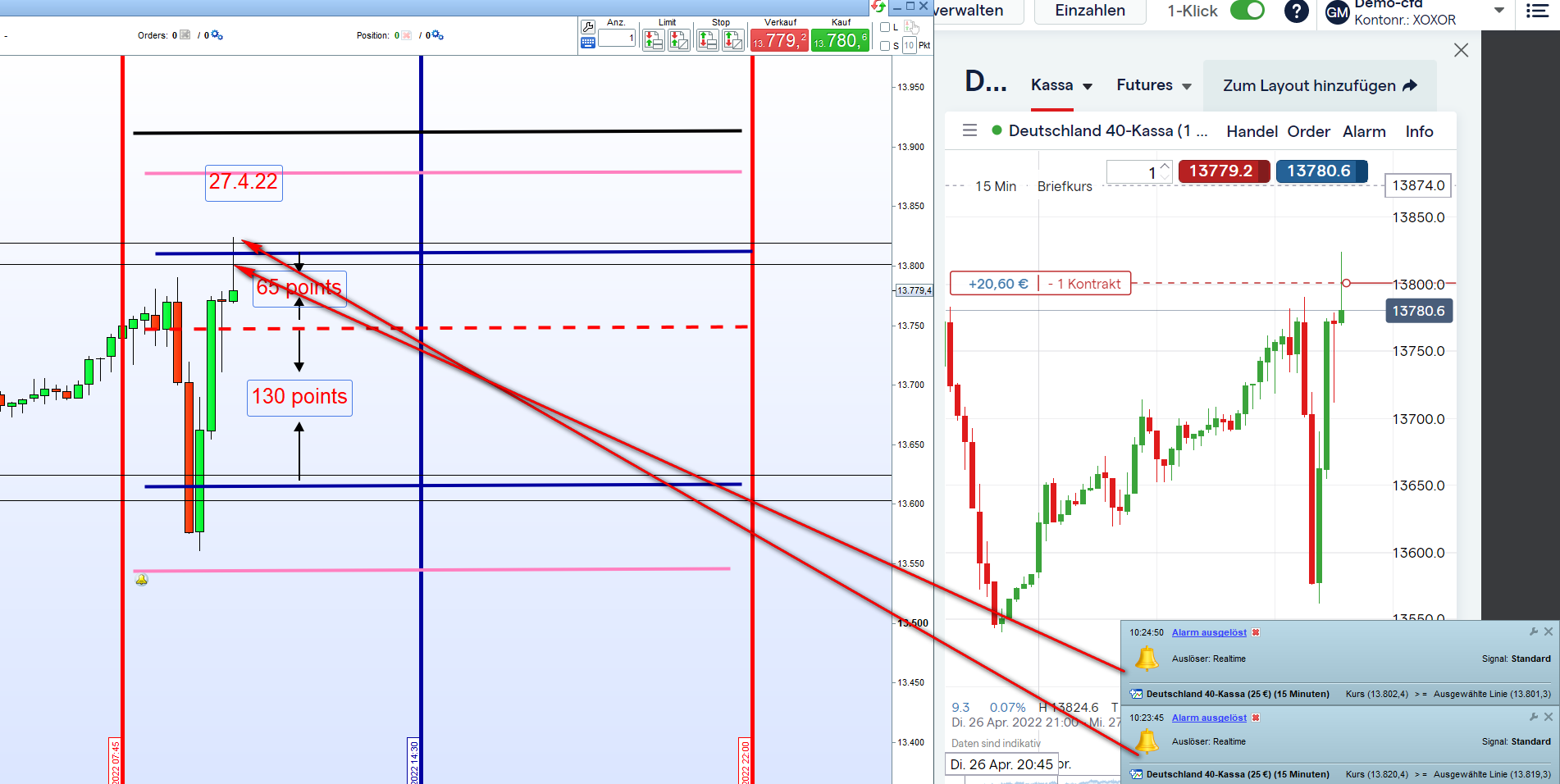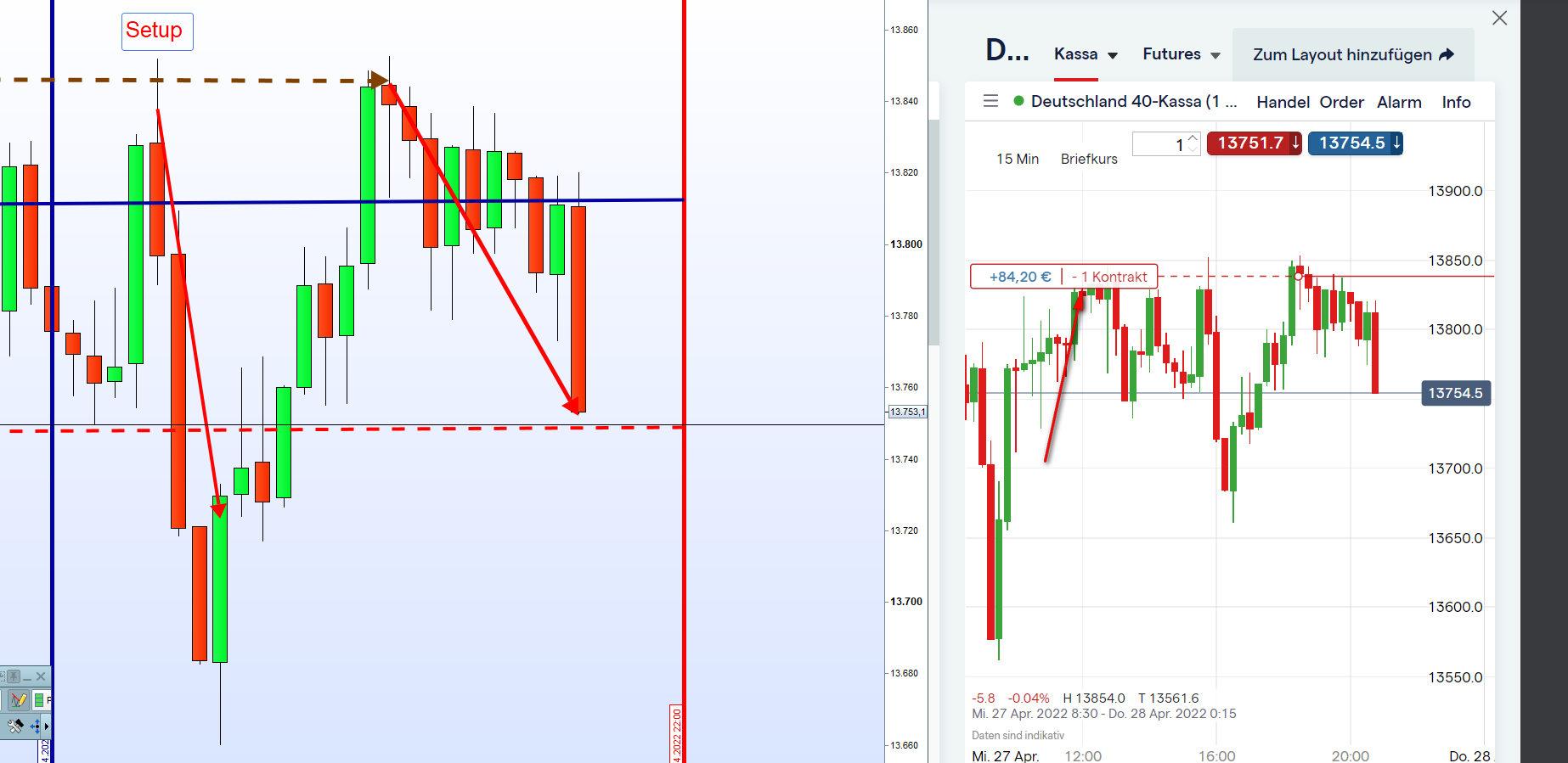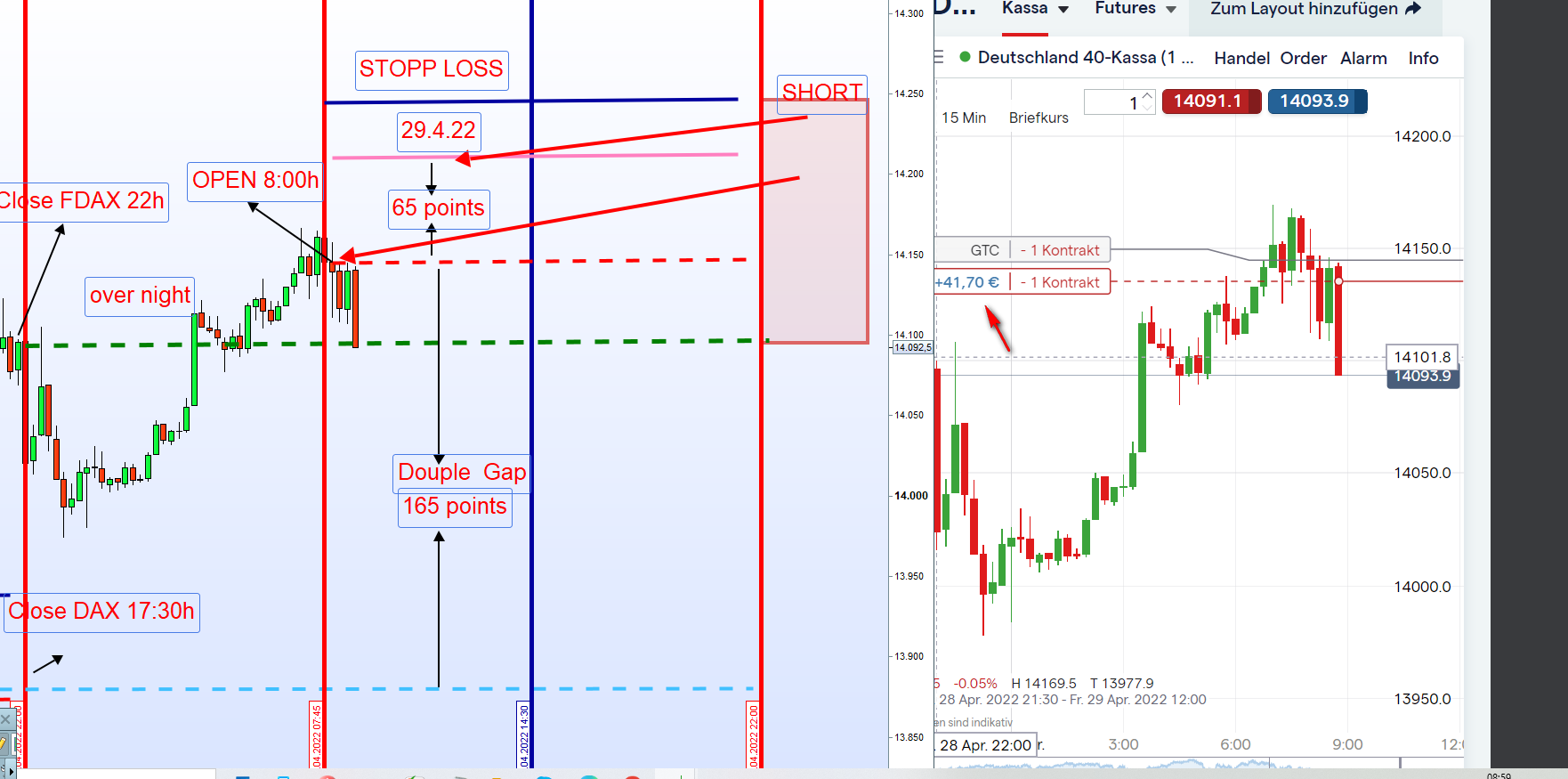 Hubo otra posicion esta manana y otra por la tarde. En total y sin exagerar se podia hoy obtener 300 puntos que son para 1 CFD 300€ y con un solo cotrato de FDAX = 7500€