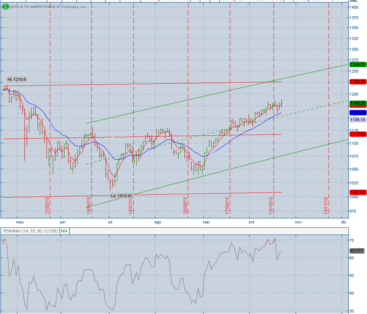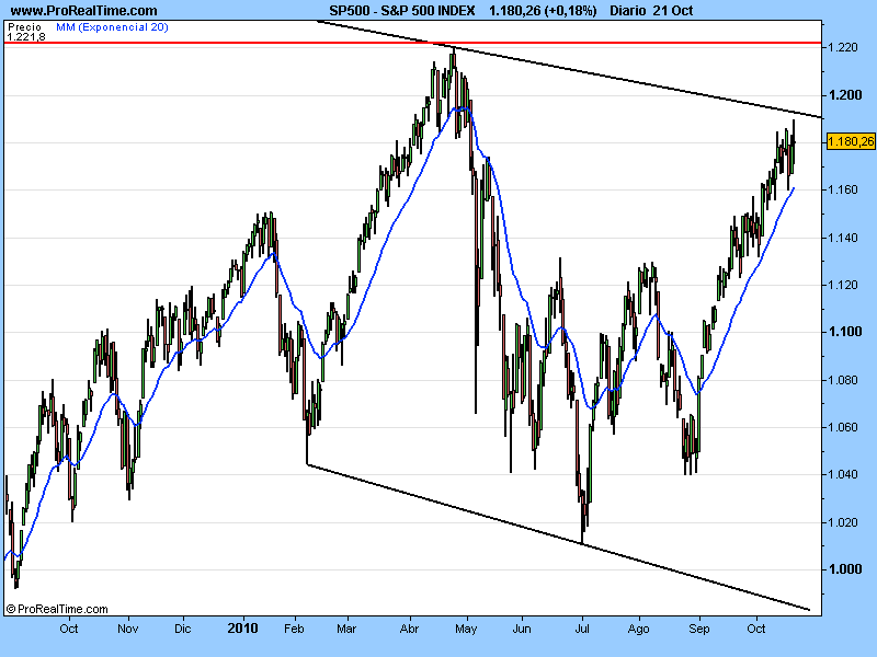 La encuesta AAII en un extremo de optimismo de pequeños inversores. Mientras no espero que signifique un techo de mercado como en abril de 2008 o enero de 2010, si que es un argumento más a favor de la ralentización. Aunque tengo la sensación de que la ralentización será especialmente hasta principios de noviembre que la FED anuncie definitivamente en que puede consistir la nueva ronda de QE.