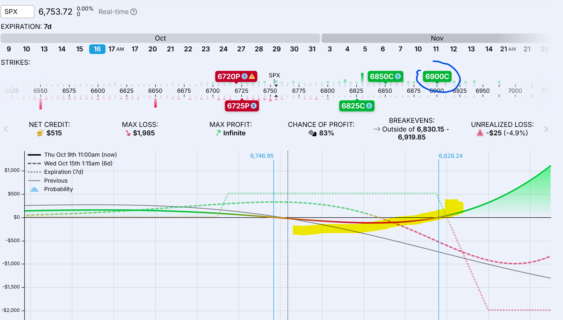 La BWB + BCS se ha complicado y ahora hemos quitado un par de spreads en el lado put para aplanar y limitar pérdidas. Si en la otra nos viene bien una subida del SPX, aquí en ésta preferimos una estabilización con bajada de la IV y que el tiempo inexorable se consuma: