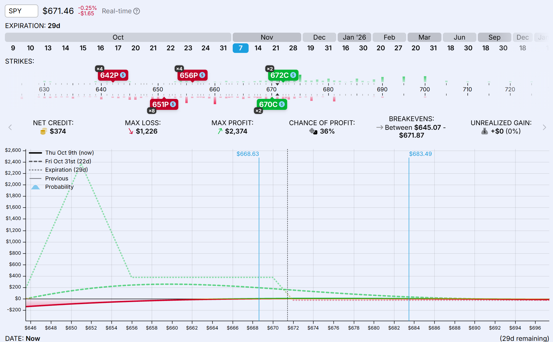 Lo de chance of profit del 36% es también ilusorio porque haremos gestión y además no vamos a vencimiento.