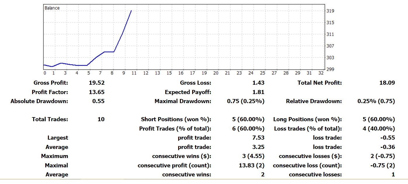 He seleccionado el EU y el EJ. El EU no tenía mucha volatilidad según la lectura del ATR. Ha alcanzado el primer TP a una distancia R. Ver gráfico.
