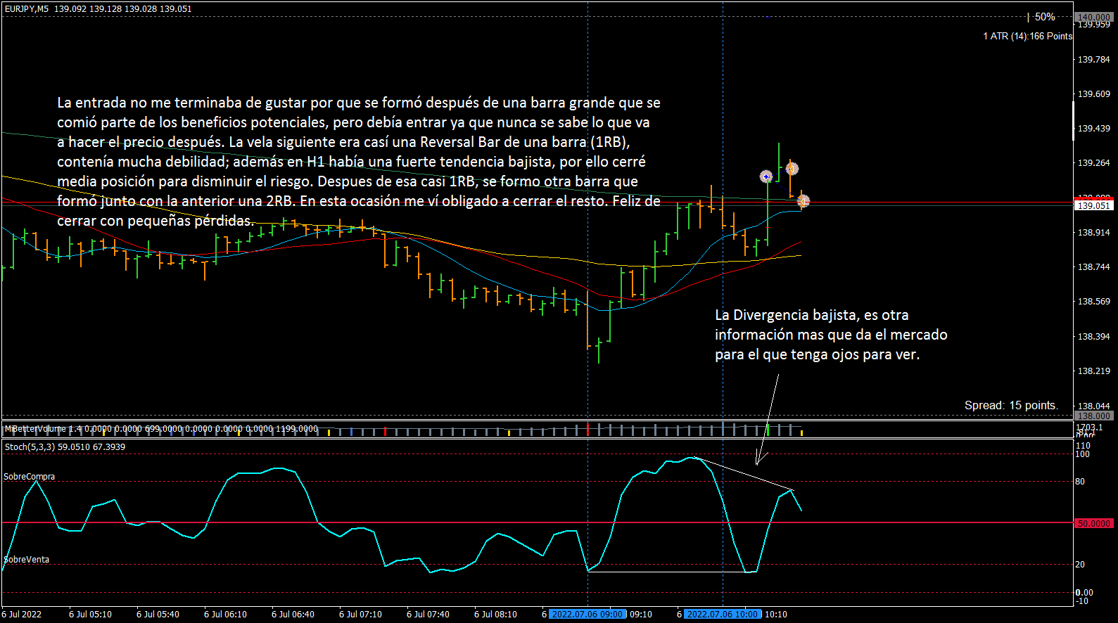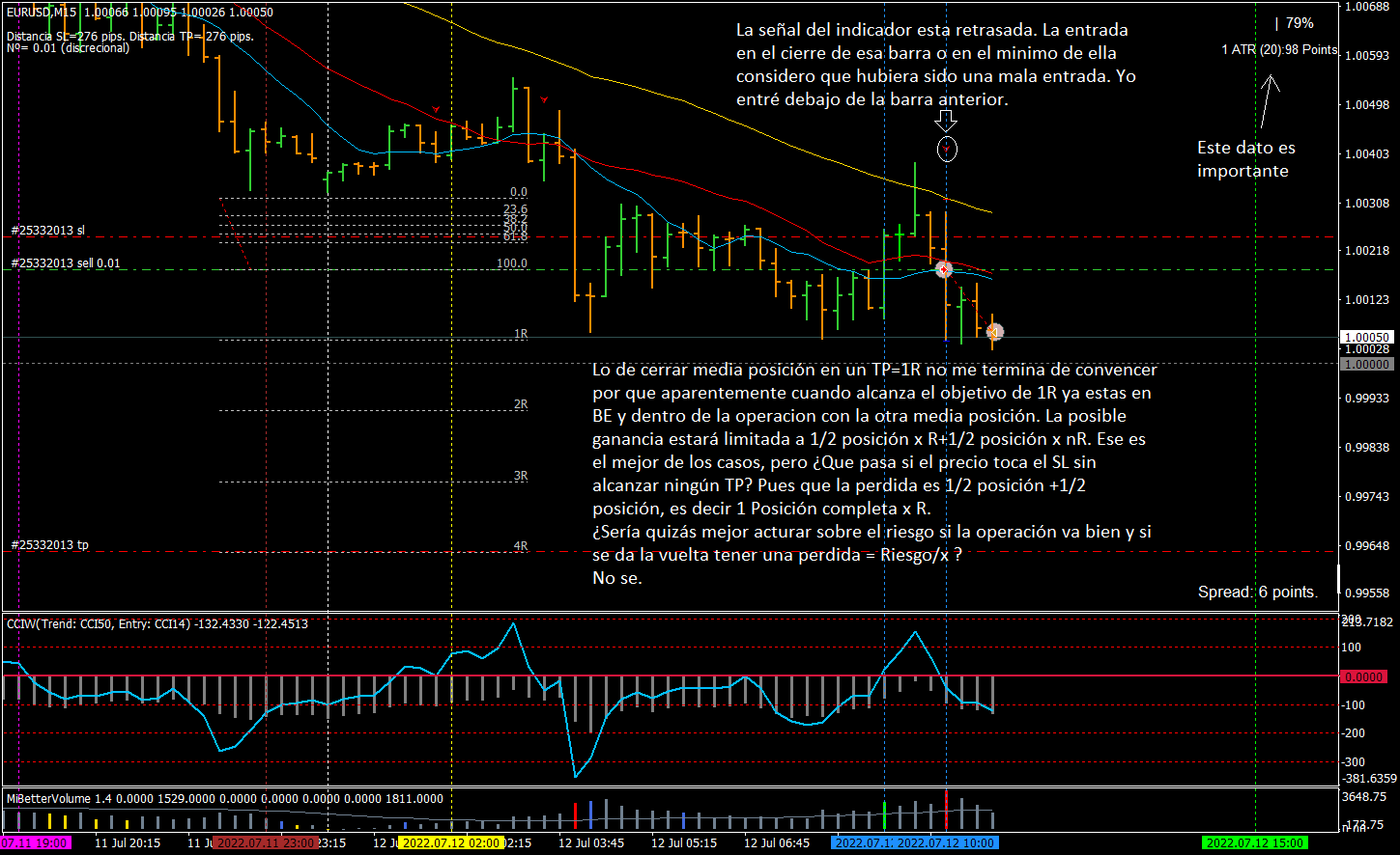 Cuando considere cerrar cierro 1/2 posición y el resto lo mantengo en BE si puedo o reduciendo el riesgo. Si la posición retorna su viaje de nuevo fenomenal y si me da otra señal la tomo. En cuanto pueda pongo la primera 1/2 posición en BE.