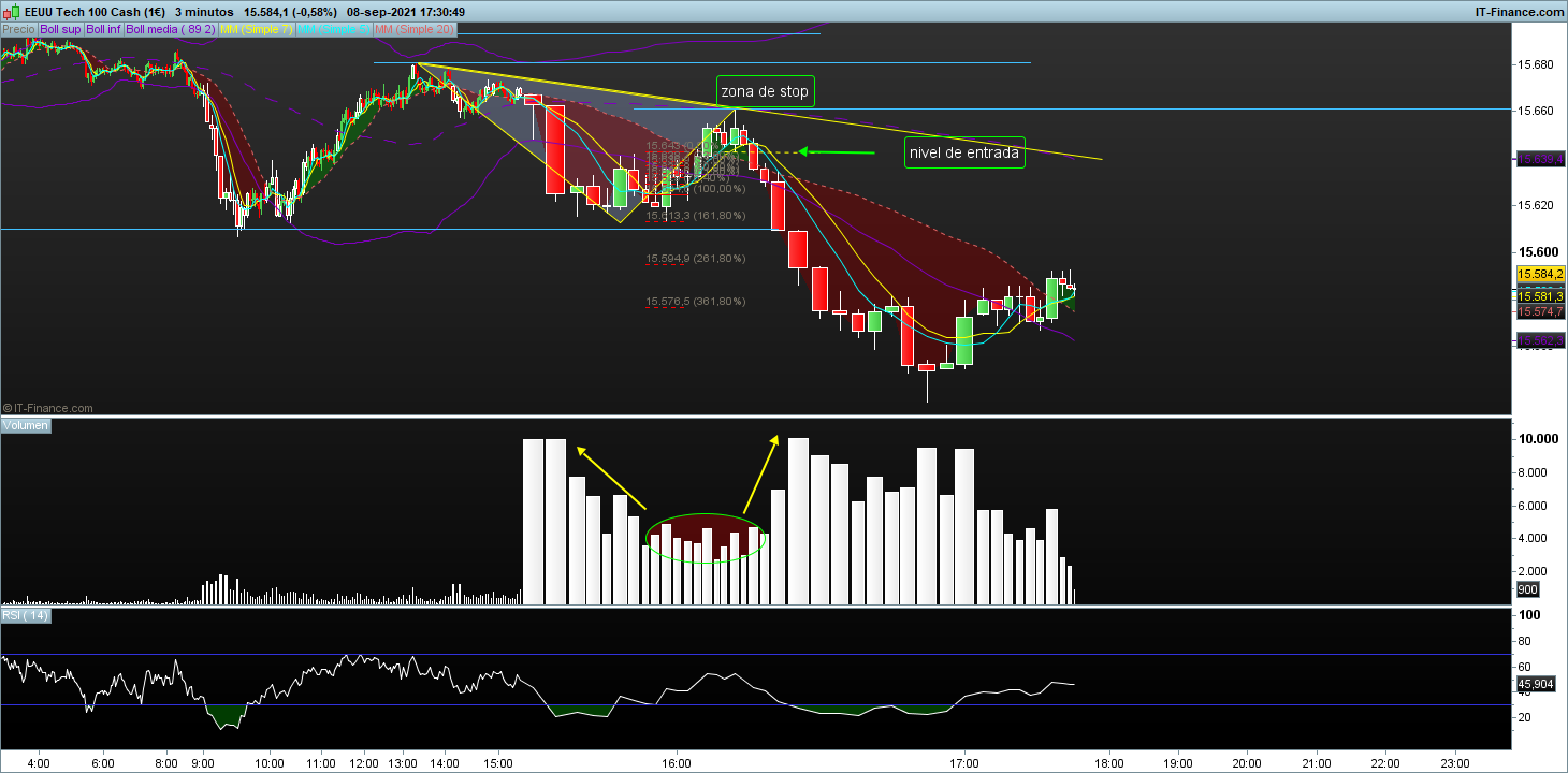 Se da en tendencias establecidas o en movimientos en zonas S/R antes de las rupturas, en este caso lo pongo en timeframe intradia porque se dio hoy,