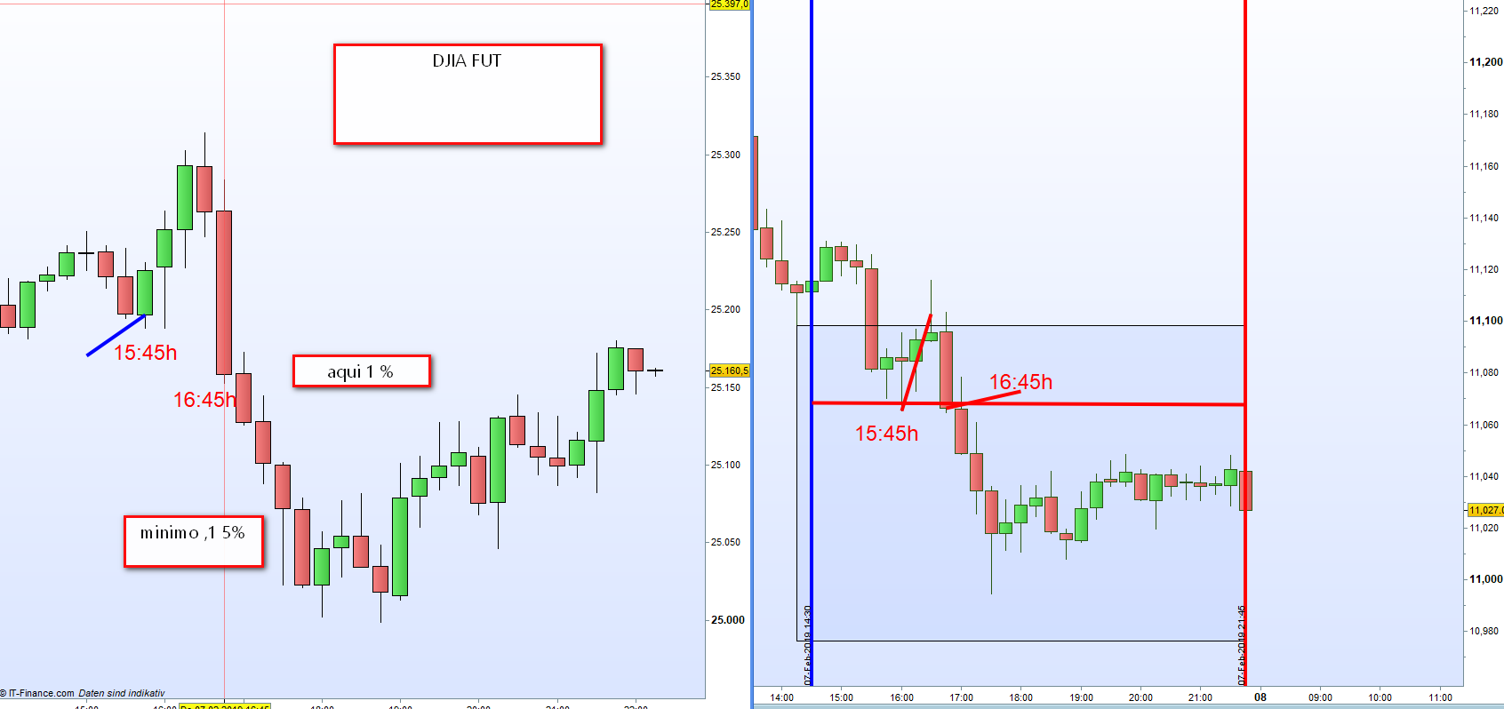 Si lo tienes mal. Mira los graficos adjuntos. En realidad teniamos un acierto en la primera zona de la extension de rango y cuando hubo un retracement el DOW ya era menos 1%. Porque no lo habia puesto asi ? Simplemente lectores pueden pensar que estoy doctorando los resultatatos. Lo que no es asi.