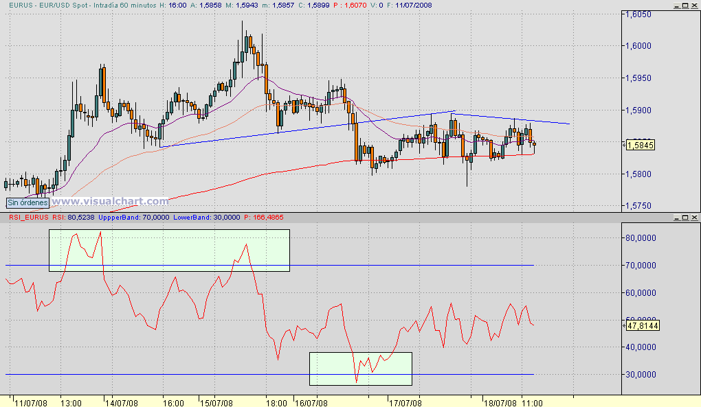 Me sumo a a pregunta de Spirit. Por otro lado yo es que no tengo en cuenta el nivel del RSI sólo las divergencias y bueno ahí sí importa pero sólo comparativamente con los mínimos o máximos anteriores y tb el lapso de tiempo que ha tardao en formarse cómo comentaba. O sea una divergencia alcista con los mínimos separados por dos horas por ejemplo debe ser compensada con una alcista de la misma embergadura. En fin, es mi opi que nadie entra a debatir y es una penaTriZhyD escribió:Pues es que cuando al eur/usd le da por caer el rsi hace mas bien poco , es orientativo , fijate mas en niveles de precios , porque incluso a velas horarias se ven a veces rsi de 10 - 15 y si no fijate en niveles de precios de finales de abril , si uno toma el rsi xa entrar sobre 30 ... le podian haber despellejado bien ... y aún asi a poca subida el indice suele relajarse para volver a caer mas y mas ...