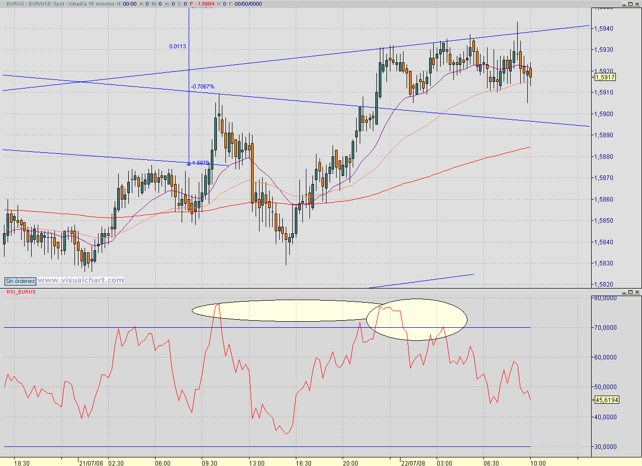 El análisis técnico funciona. Ya te digo d_vin@. Yo, como muchos, al gráfico ya lo tengo bastante desentrañado (de momento), eso sí, de Elliot he tenío que pasar para conseguirlo, figurillas y RSI, thats All. Esa para mí es la parte menos difícil. Lo que se me da fatal es el tema del autocontrol. Disciplina y paciencia. Eso es lo que me falta.d_vin@ escribió:si el RSI se descarga rompe algo?, te funcionan las figuritas, y las lineas tecnicas? las ondas de elliott? el analisis tecnico?