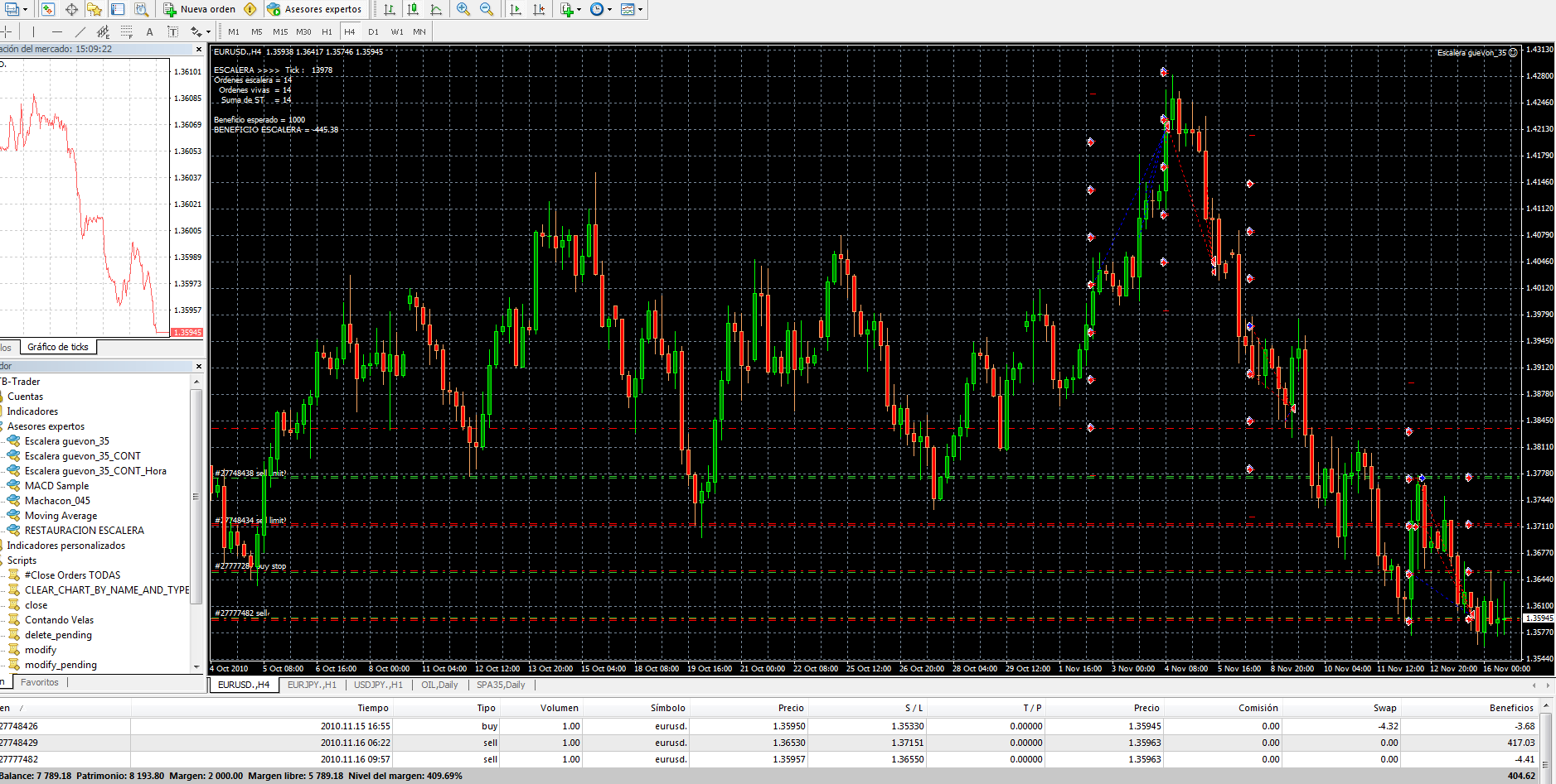 Bien, voy a enseñar, (Ojito!!!...una sola vez y no se repetira), como vaaaa... un sistema automatico 100%, y como..., a pesar de todo lo que dicen los teoricos de las conspiraciones, el sistemaaa..., logra arañar (no tiene nada que ver con las arañas), un pequeño beneficio matematico que viene dado por la colocacion de las ordenes segun como va desplazandose el precio...
