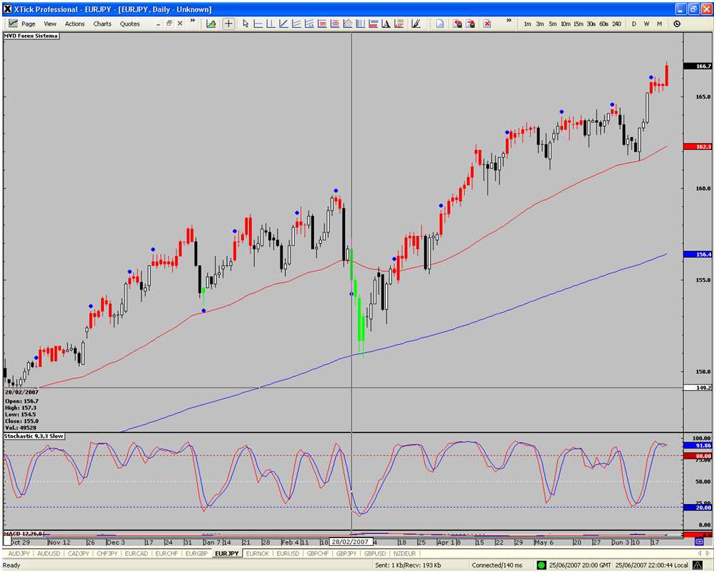 es que yo te he dicho que cuando la linea roja cruce los niveles 20/80 pero no es la roja punteada que viene por defecto sino la verde por defecto, es que el error es mio porque cambie los colores, en el caso que tu me pones es cuando la linea verde del stocastic cruce los niveles 20/80 en la jpg que tu me mandas, si buscas en el metatrader el mismo dia que yo te mando del xtick y comparas lo comprenderas