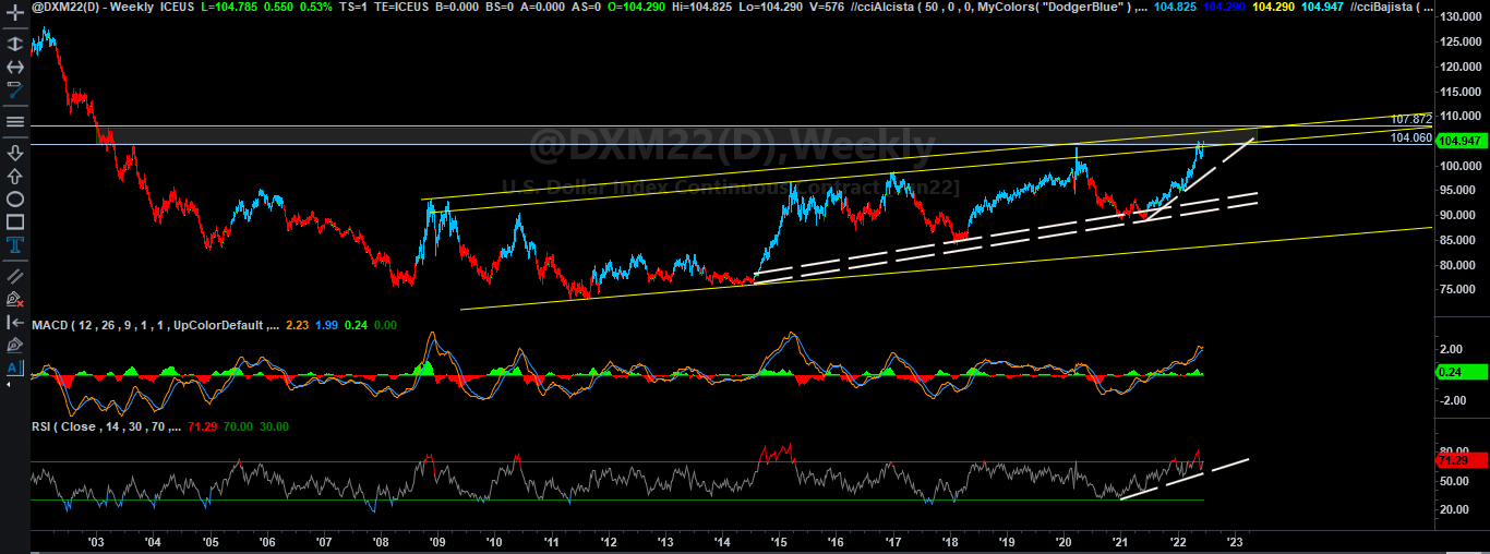 Buenos días, en estos gráficos podemos observar que tanto el bono a 10 años americano como el index dólar llegan a zonas muy importantes.... donde y como posicionarnos es la gran pregunta.