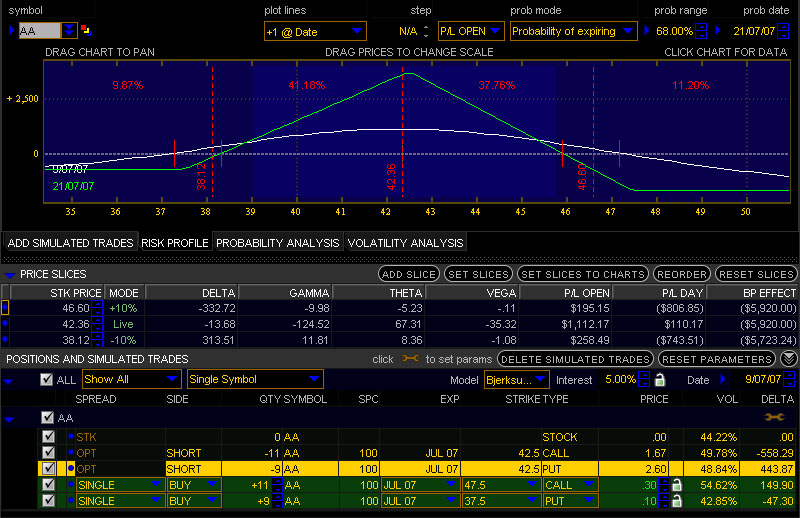 He pensado que a la que esto se mueva un poco podemos vender un vertical para cubrir una de las patas en el sentido del movimiento del precio. Pero repito que se aceptan sugerencias.