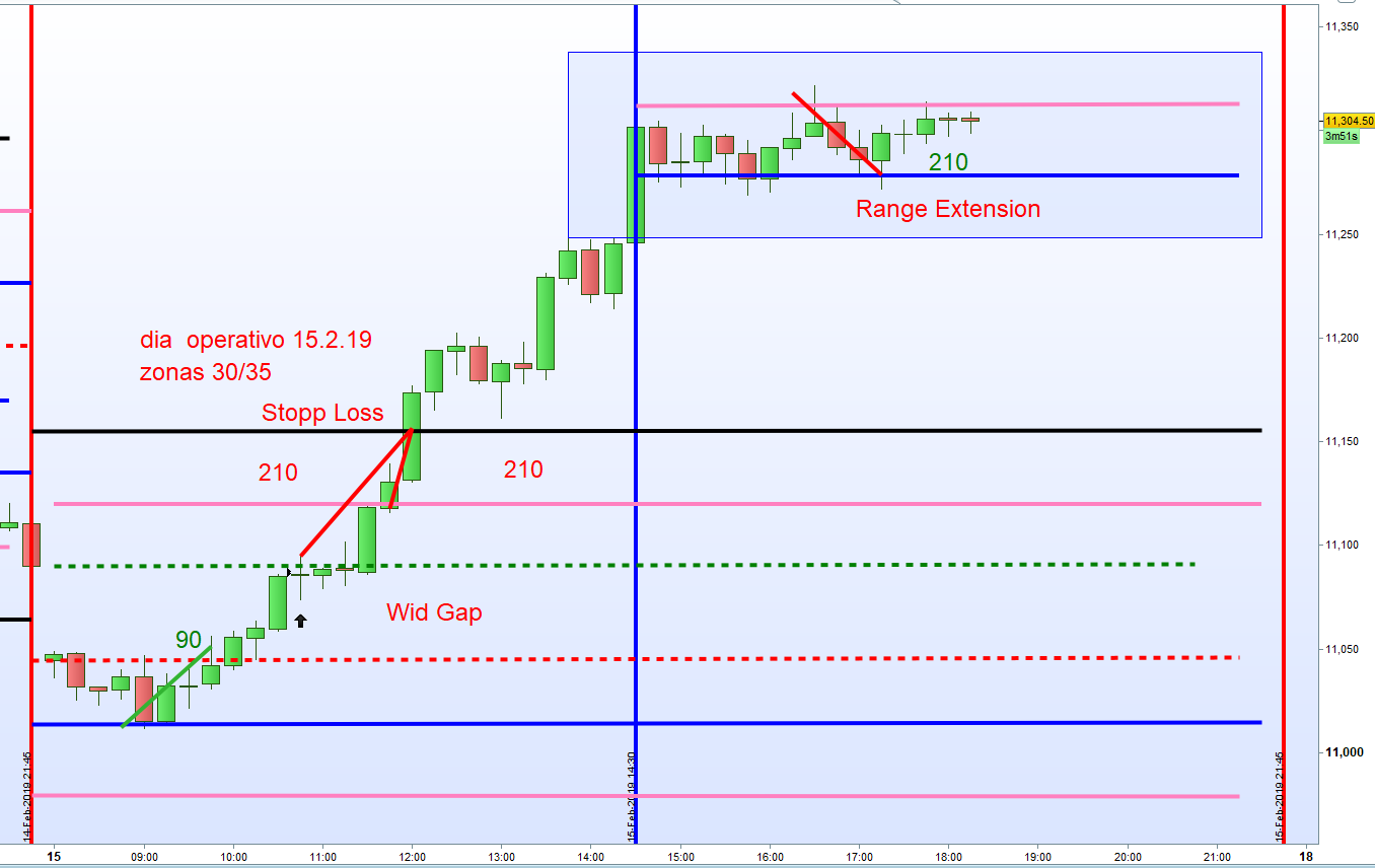 En resumen dice si el DOW ha bajado (o subido ) unos 350 puntos y empieza a consolidarse a tiempo lateralmente y esta coincide con la extension de rango del FDAX se puede considerar de tradear la extension de rango.