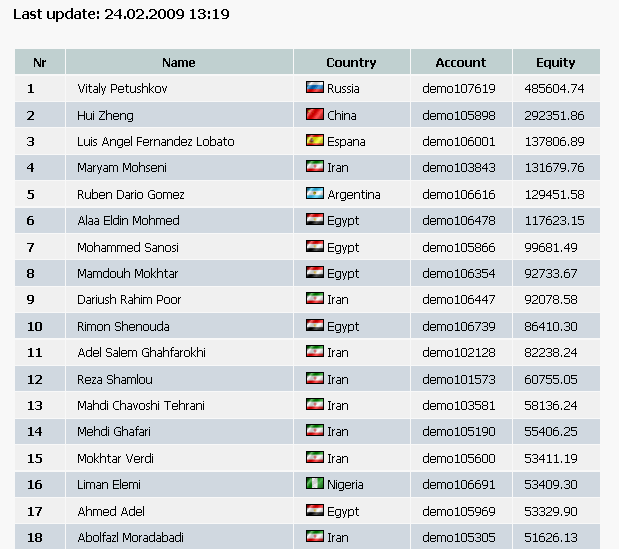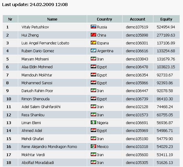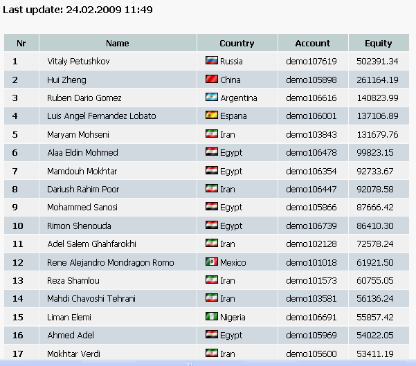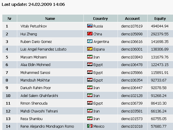 Ahora el que me preocupa es el argentino, ese tío es muy bueno, lo llevo siguiendo varias semanas y es muy bueno, muy buen estratega. Lo de buenos traders, se lo supongo a todos los rivales que están arriba a estas alturas.erredosdedos escribió:Tranqui, Spirit,que el ruso pa mí que se dopa y lo van a eliminarVe tranquilo, que, como ves, no solo consiste en subir, sino en que los de delante caigan