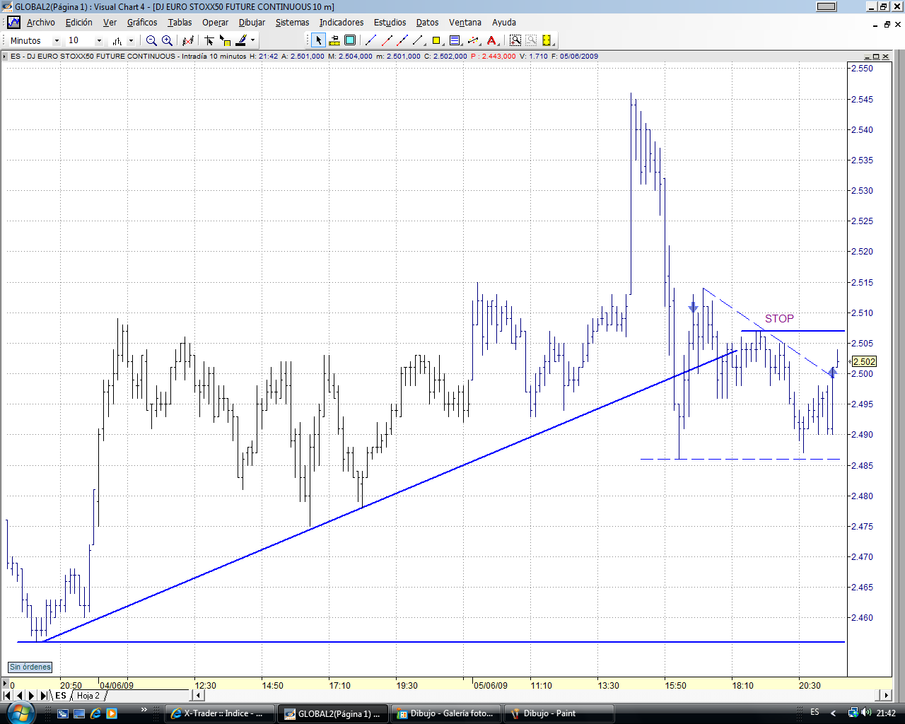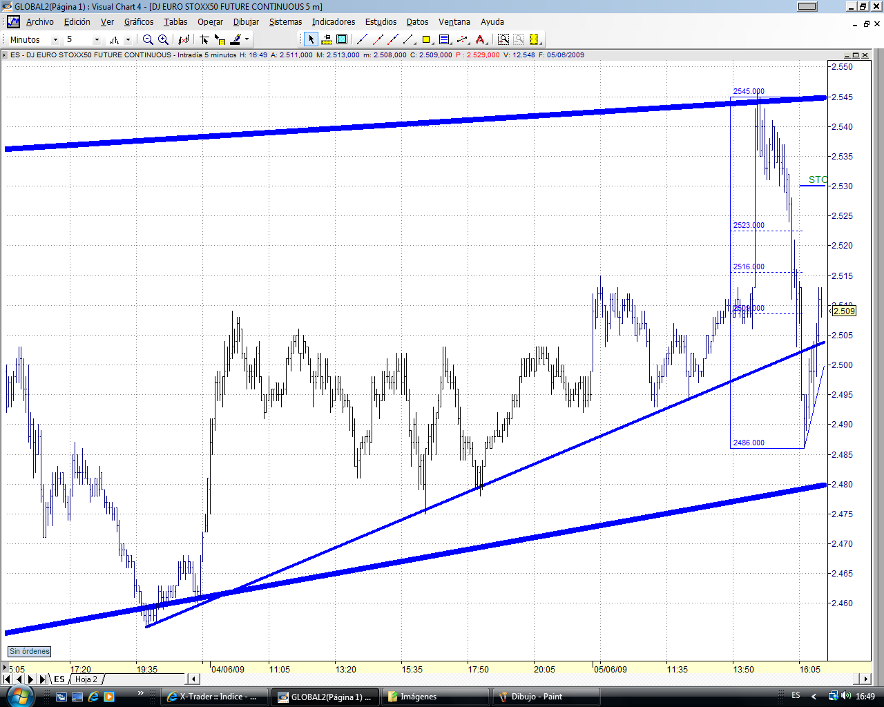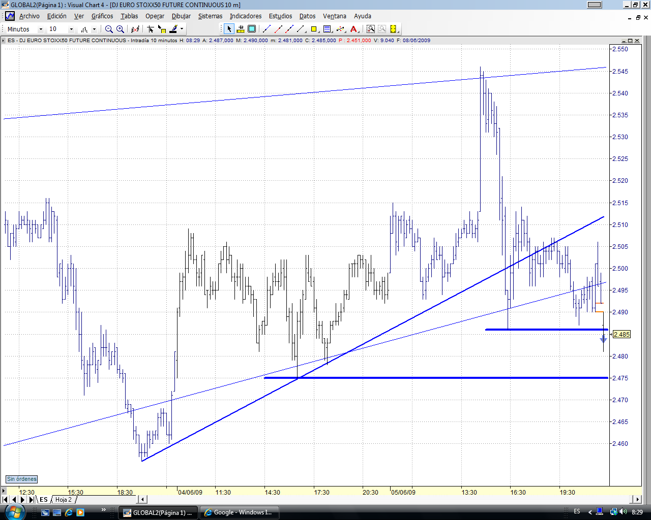 De cara a mañana, despues de romper el mini canal lateral que dibujo hoy, podriamos tener una tirada al alza. la zona de 2505-2510 podriamos tener un primer techo.
