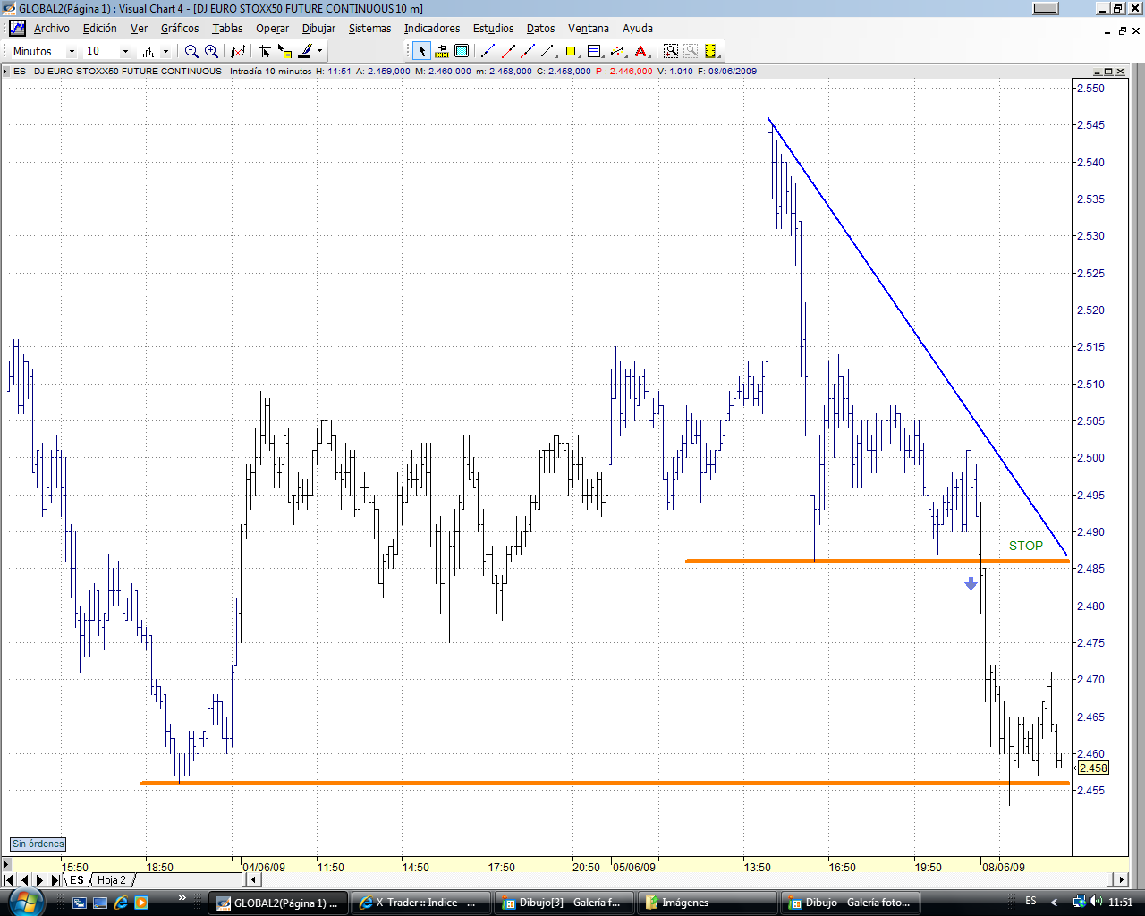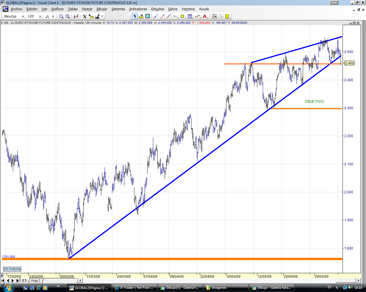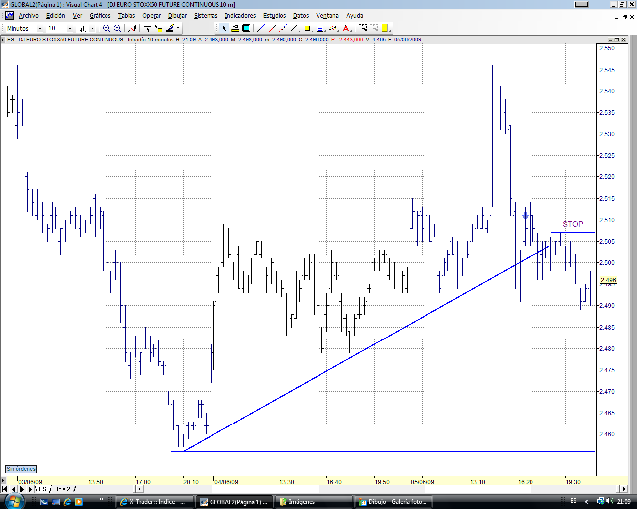 De cara a mañana, despues de romper el mini canal lateral que dibujo hoy, podriamos tener una tirada al alza. la zona de 2505-2510 podriamos tener un primer techo.