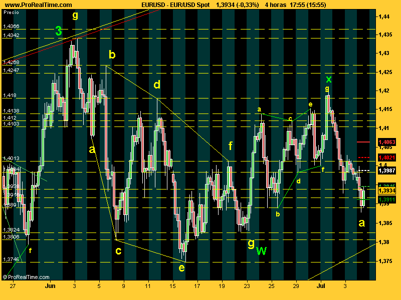 Pa mí el euro está lateral y aún le queda un último coletazo, pero vaya que tiene que hacer el tonto esta semana entera y parte de la otra, con lo que seguirá pacápallá pero no muy lejos y lo que un día bajo, lo subo al siguiente etc...o sea más de lo mismo jejeje...pa desquicio de los compradores de conos y disfrute de aquellos que pongan límites pa recoger beneficios y pasen de los stops jeje.
