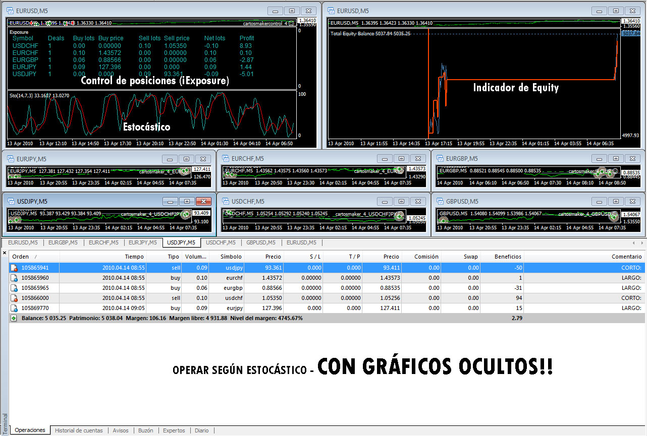 - Olvidarnos del gráfico y centrarnos en el control de la Equity. El gráfico te da 5 señales de compra y venta por segundo... aíslate de eso, céntrate en las posiciones.