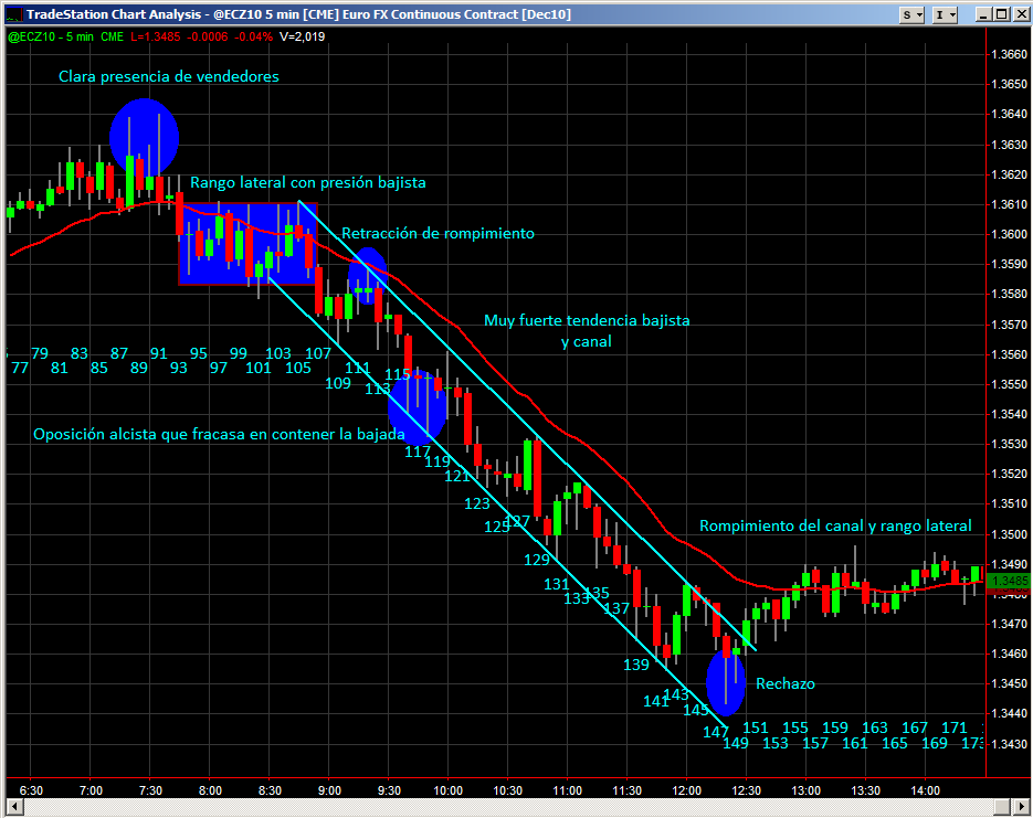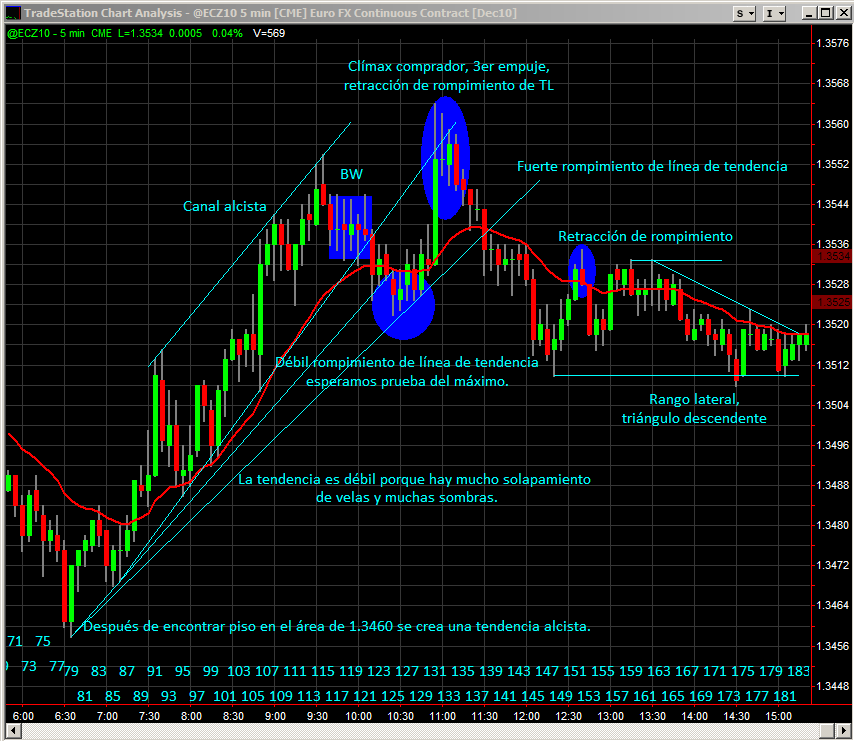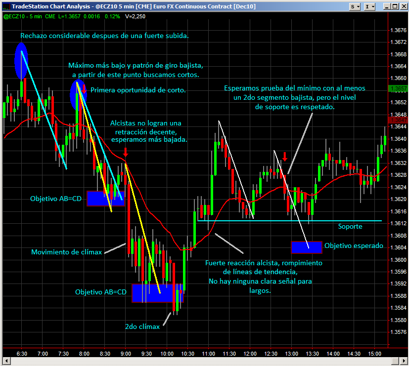 Lo descrito son sólo algunas breves observaciones, en realidad la interpretación de la gráfica es mucho más compleja. De hecho se hace prácticamente vela por vela.