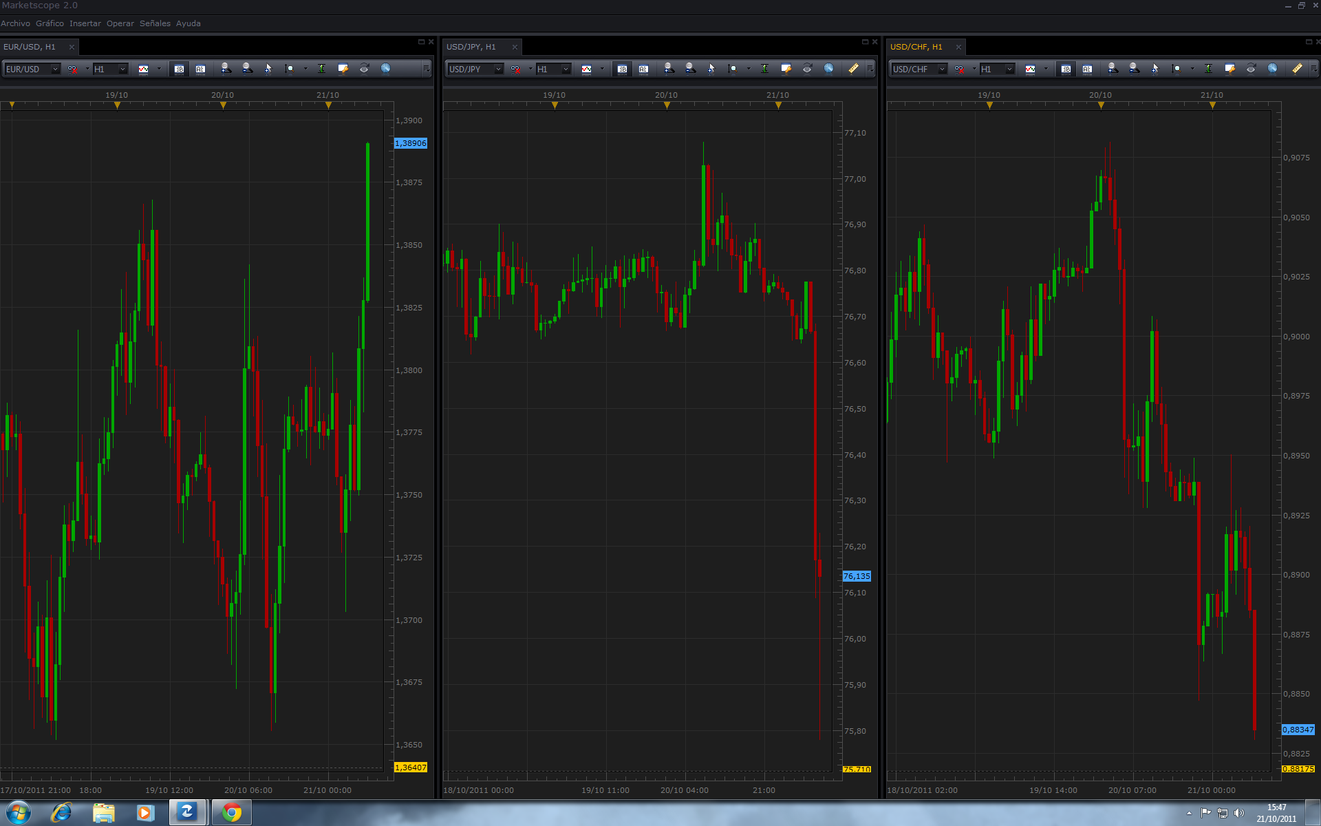 cuatro escribió:Sinceramente: me ha descolocado y no sé cómo podría haberlo previsto. No le veo lógica al rally del euro esta mañana justo cuando ha terminado la jornada asiática. Creo que ha sido contra todo pronóstico, pues mis indicadores: ADX, Bollinger, medias exponenciales y SAR, no me han alertado ante tal posibilidad.