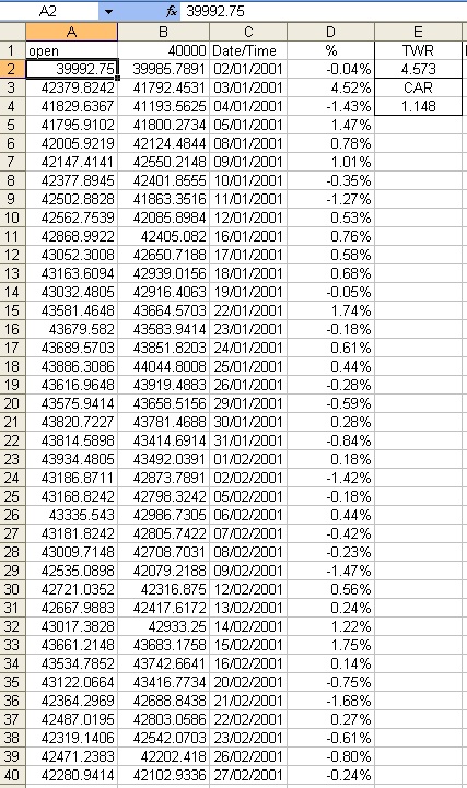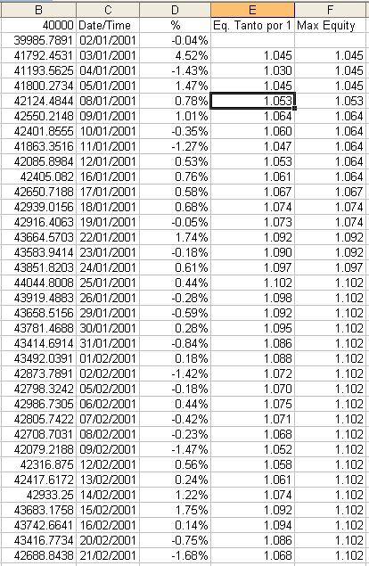 En mi caso, llevo a Excel resultados de mi sistema y después, calculo los porcentajes de beneficio respecto de la equity del día anterior.