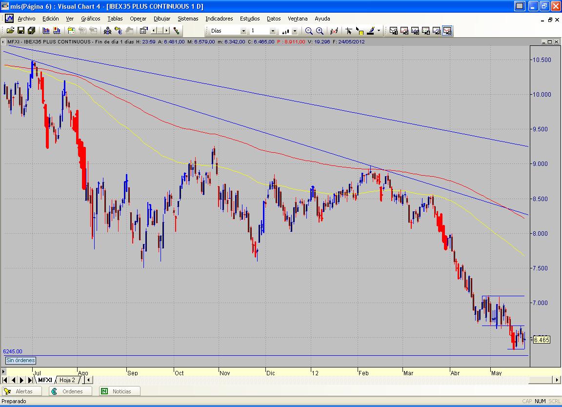 La subida vendrá por la destinación de un billón de euros para proteger la moneda única europea, por el BCE y el FMI y assitiremos a la mayor subida del ibex en 20 años de historia,...Bueno, yo lo pongo y el que avisa no es traidor. La gente que espera que el IBex vaya a 5300, minimos del 2002 se le quedará un poco cara de tonto, pero bueno es el riesgo que hay que correr al estar fuera de mercado...si es que en el fondo hay muchos super bajistas que siempre postean pero nunca compran...