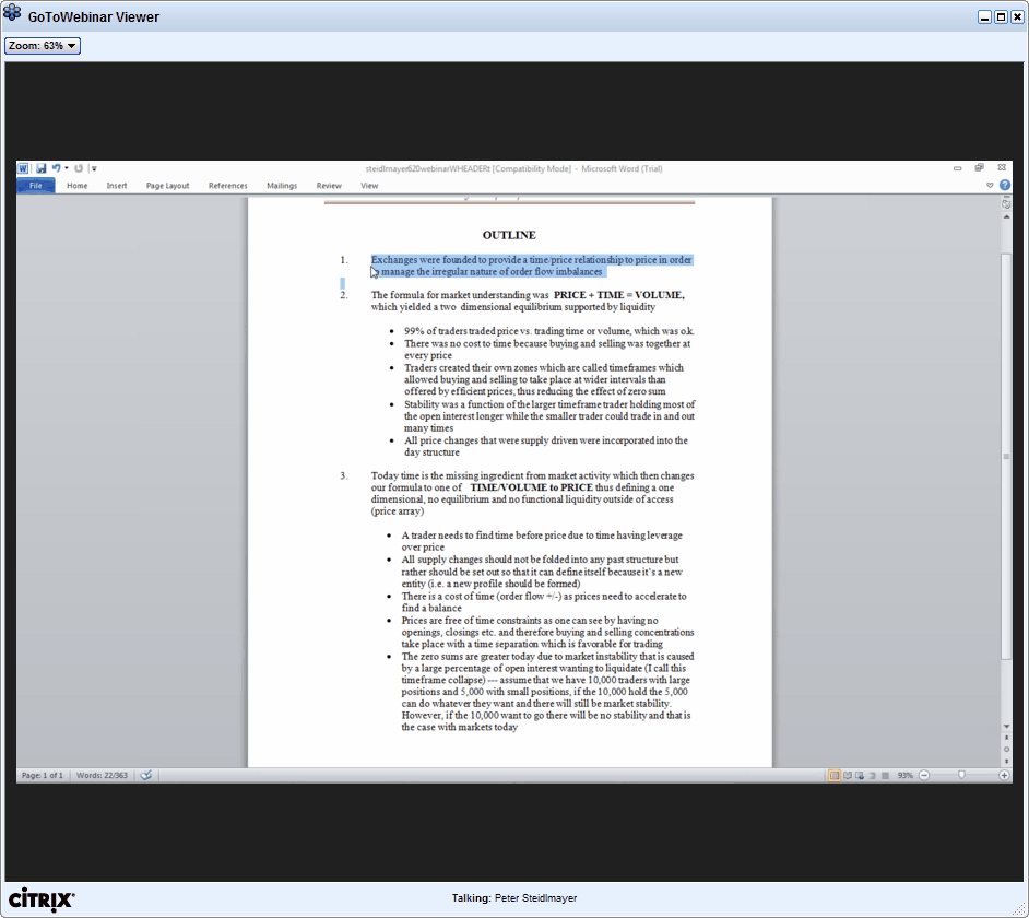 En lugar de Price=Time = Volume considera hoy la formula Time/Volume to Price mas adecuado. Esto conlleva cambios en los