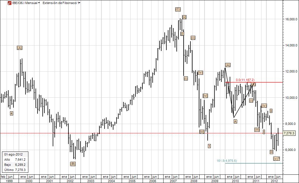 Se me ha ido la muhé a hacer unos recaos esta tarde y como estaba ocioso me he puesto a estudiar el IBEX...Pos como que me sale un patrón bajista terminao! y meses alcistas...¿hasta dónde? Huy, eso es un lío tremendo. Pero largos todo lo que queda de año, como que sip.